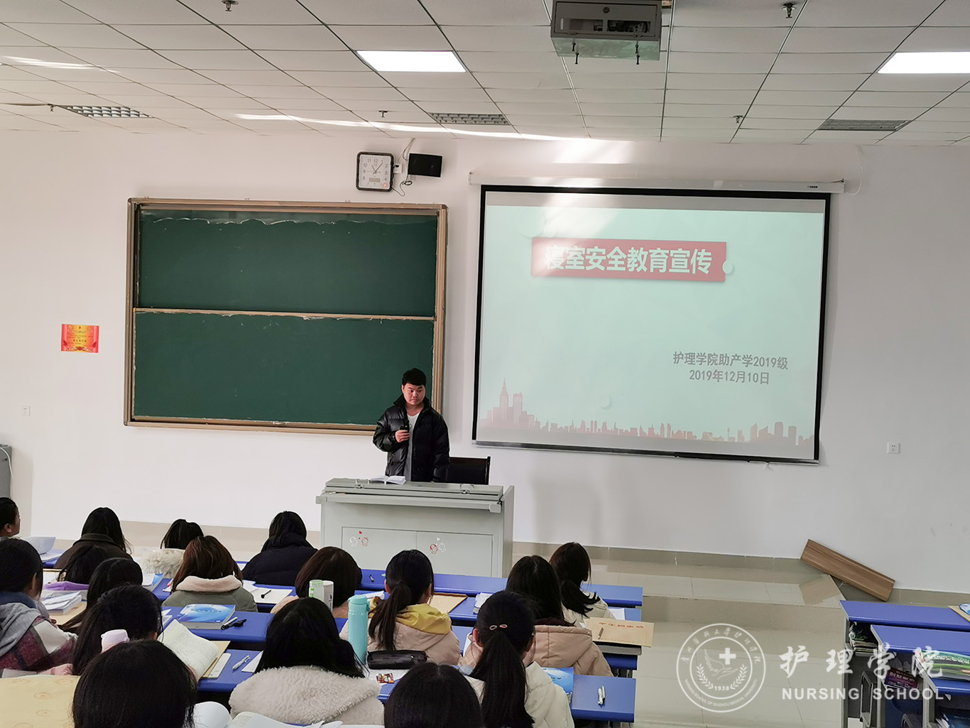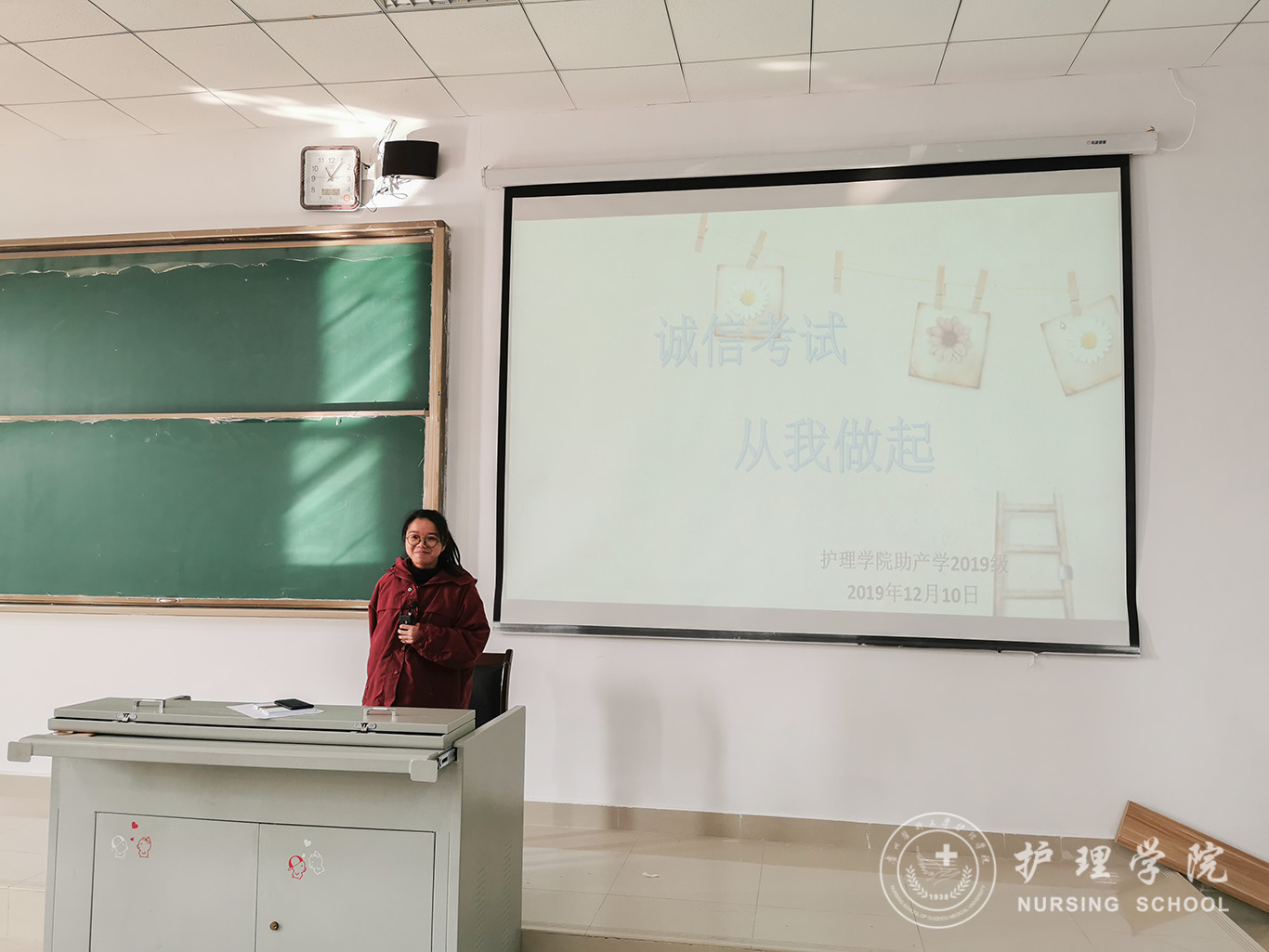 为进一步落实我校考场纪律及学生寝室管理相关规定,加强学生诚信考试的自觉性,进一步维护宿舍安全卫生的意识,12月10日,kaiyun开云官方网站2019级助产班开展了“考试诚信别忘记,寝室安全要牢记、”主题教育班会。本次班会由辅导员曾敏主持,助产学2019级全体同学参加。