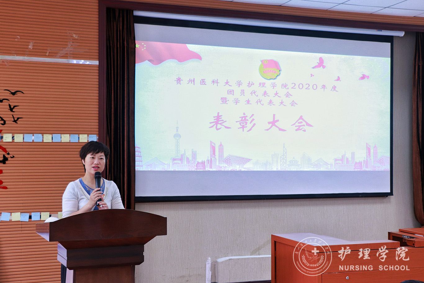 会议共分为七项议程。第一项,王晓玲致开幕词,她首先感谢了校团委及学院党委对团学工作的指导,对团学工作办公室和学生会过去一年工作的给予了肯定,同时要求团员青年要继承南丁格尔精神,努力学习,不断锐意进取,在全面建成小康社会的征程中,释放出青春与活力。第二项,由学生会组织部长勾季曼同学做筹备工作与资格审查报告,报告中充分展现共青团组织在学院党委正确领导下,在探索中前进,在务实中发展,积极投身学院建设和发展做出的贡献。第三项,由团学工作办公室副主任蓝阔耀同学做团学工作办公室工作报告,报告中总结了团学工作办公室在第二课堂学分认证、开展政治理论学习以及三会两制一课中起到的作用,努力构筑团员青年强大的精神支柱,以正确的思想观念,着力推进青年思想政治教育的新模式。第四项,由学生会副主席汤昌旺同学作学生会2019年度工作总结,总结回顾了过去的一年中学生组织在各项活动中取得的成果,并代表学生会全体成员向大会表态,将会一如既往地做好本职工作,以全新姿态展现护理专业的品牌与特色。第五项由团学工作办公室组织部部长欧香爱同学进行了团学工作办公室工作计划的汇报,汇报中展现出要以抗疫前辈为榜样,团结带领广大团员青年积极参与校园文化和志愿服务等活动,不断提高学生干部们的综合能力。第五项,由毕丽宣读获得表彰的先进集体和个人名单并颁发奖状。接下来进入精彩的竞选环节,之后王秀红讲话,她首先代表学院党委向会议的召开表示热烈的祝贺,对大家过去的成绩给予了肯定。她讲到,此次会议的召开对于学院学生工作来说是一个承前启后、继往开来、再创辉煌的崭新起点,相信此次大会的召开,必将为学院团学工作的进步与发展起到积极的推动作用。同时,她对同学们提出了几点希望:一是要求同学们要有坚定的政治方向,要树立崇高的理想信念和不断追求真理的精神,坚定“四个自信”、树牢“四个意识”、做到“两个维护”,坚持全面发展,德才兼备,勇攀高峰。二是要始终把思想引领、行动带领、服务同学作为工作的出发点和落脚点,切实发挥好组织带领、“桥梁纽带”作用,提出了“与时俱进,共同创新,改革发展”的新观念。三是要切实加强自身建设,探索工作新方法,保持优良作风,当好党的后备军、做好团的好帮手。她还提出要响应团中央的号召,贯彻落实学联学生会改革要求,学生干部队伍要有“精英化,精准化,精炼化”的工作理念。最后,她指出同学们要不忘初心、敢于担责,做到清醒坚定、矢志不渝、胸怀大志,为脱贫攻坚,为实现全面小康社会贡献自己的智慧和力量。会议第七项,由团学工作办公室副主任蓝阔耀同学致闭幕词,他代表学院全体同学对学院党委、团委及老师的亲切关怀和悉心指导表示感谢,同时对大会所有辛勤工作的工作人员致以敬意。最后随着《中国共产主义青年团团歌》音乐的响起大会圆满落下帷幕。