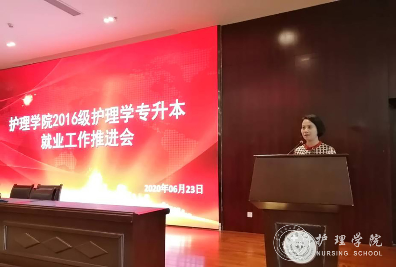 为了及时传达学校就业工作会议精神,抓住就业的黄金期,全面推进2016级护理学专升本毕业生就业工作,帮助他们早日实现就业,kaiyun开云官方网站于6月23日下午在南校区道德讲堂召开了2016级护理学专升本就业工作推进会。学校招生就业处处长张红霞、kaiyun开云官方网站党委书记杨英、kaiyun开云官方网站副院长刘志燕、kaiyun开云官方网站党委副书记王秀红、学校招生就业处就业指导中心主任余小川、kaiyun开云官方网站相关辅导员及2016级护理学专升本全体学生参加此次会议,会议由王秀红主持。