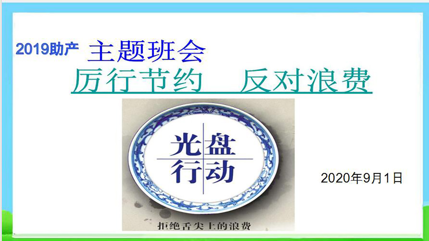 为了学习贯彻习近平总书记关于厉行节约的重要指示精神,2020年9月1日kaiyun开云官方网站助产学2019级在广德楼1602教室召开“厉行节俭,反对浪费”的主题班会,本次班会由辅导员曾敏组织,助产学2019级全体同学参加。