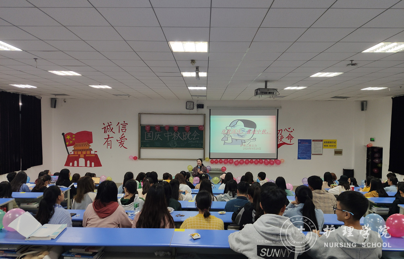 为迎接中华人民共和国成立71周年,喜庆中秋佳节,进一步丰富同学们的文化生活,9月29日晚,kaiyun开云官方网站助产学2019级、护理学甲、乙、丙班在各班教室举办了“情满中秋欢度国庆”文艺晚会,辅导员曾敏、杨叶卿,班主任老师以及全体同学欢聚一堂共庆佳节。