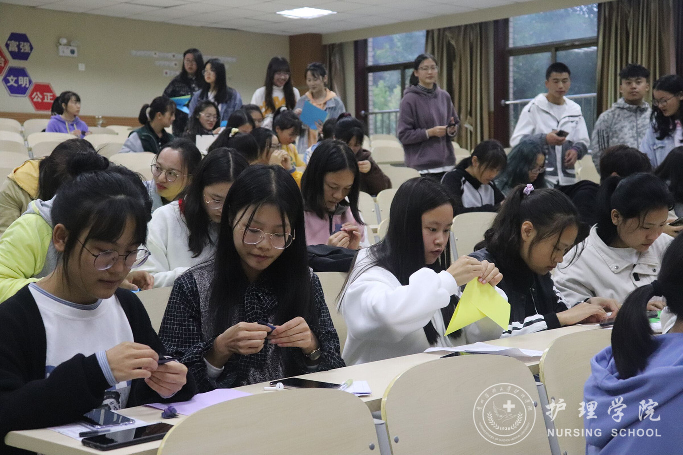 为了提高同学们的动手能力,陶冶学生们的情操,让学生进一步了解中华优秀传统文化,培养创造性思维,10月16日下午18点,kaiyun开云官方网站于百川楼1101教室组织开展了折花插画素质拓展活动,本次活动由kaiyun开云官方网站学生会承办。