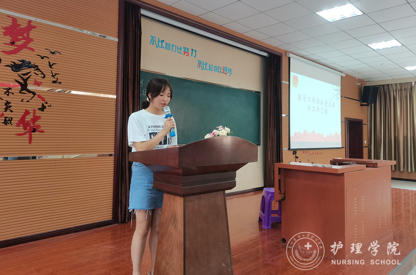会议第一项,全体起立奏唱国歌。会议第二项,由办公室副主任张凤毅、部门负责人陆梦园、邓长敏分别对2020-2021学年的工作做出总结。过去的一年,在大家的共同努力下,顺利完成了学院交给的各项任务,新的一年成员们也将再接再厉。会议第三项,王晓玲讲话,她对团学工作办公室的工作给予了肯定,也表达了对未来团学工作的期许,希望团干部们能够充分发挥出团员青年们的模范带头作用,扎实学好党的理论知识,认真学习,积极工作,认真开展“三会两制一课”,做好各班团学工作的领路人。会议第四项进行了换届选举。每位候选人就自我介绍、工作经验以及对未来工作计划进行竞选演讲。他们才思新颖,在台上规划着继续蓬勃发展的美好蓝图;创新思维,为团学工作开展提出自己独特见解。通过语言文字让现场老师及各位同学了解他们的闪光之点,独特之处,他们像六月的火海,用青春点燃未来。会议第五项,对本年度团学办先进个人、团支书讲团课比赛获奖者颁发奖项。 第五项,全体起立,奏唱团歌,会议圆满结束。至此,本次换届选举会议圆满结束。