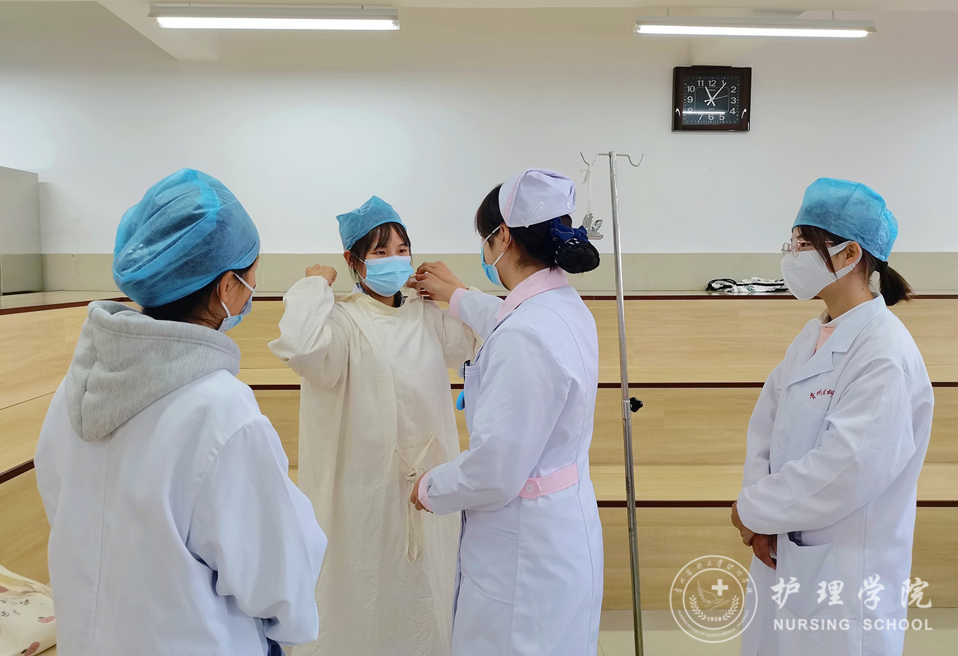 11月6日,护理技能协会于南校区百川楼护理技能教室一、二开展了无菌铺盘法及穿脱隔离衣的培训。本次活动由协会技训部罗霜、韦艳、潘黔荣、袁劲松作为教练员负责培训工作,2020级-2021级各班代表参与了此次培训。
