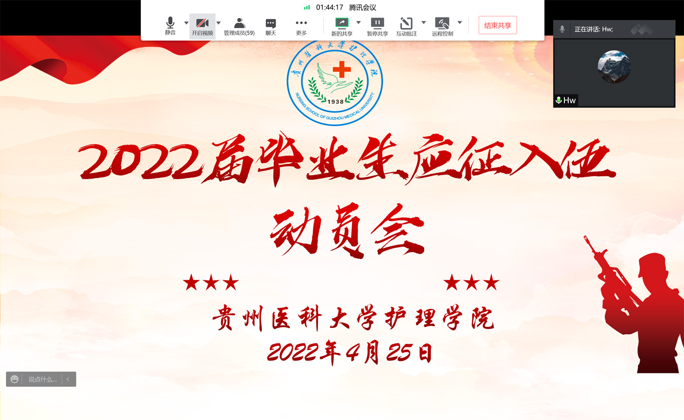 4月25日,为做好大学生应征入伍政策宣传,动员毕业生积极参军报效祖国,kaiyun开云官方网站召开了2022届毕业生应征入伍动员会,kaiyun开云官方网站党委副书记兼纪委书记何为、毕业班辅导员李杏春以及2022届毕业班适龄男同学参加了本次会议,会议由学生管理科副科长毕丽主持。
