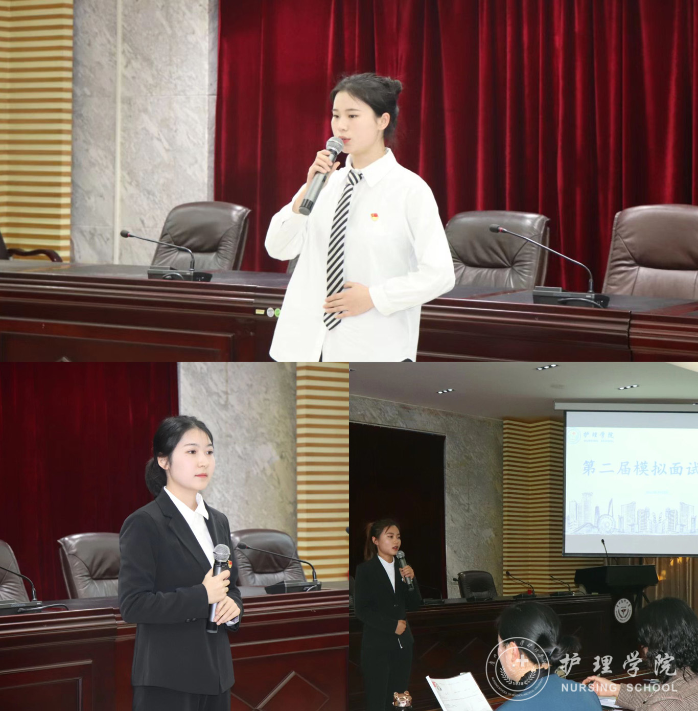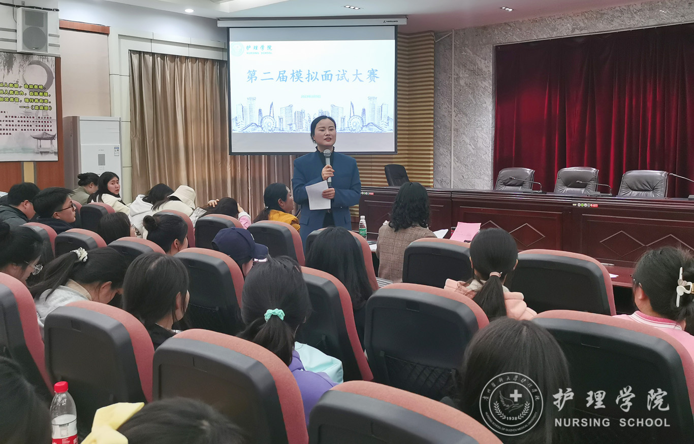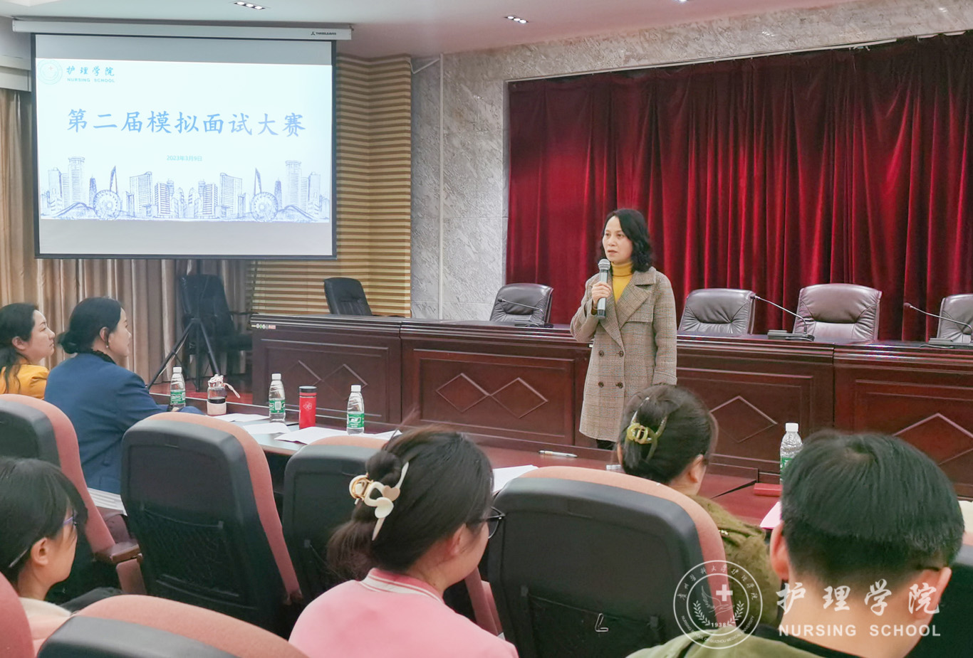 3月9日,为提升毕业生的竞聘能力与面试技巧,kaiyun开云官方网站第二届模拟面试大赛决赛在北校区道德讲堂举行。kaiyun开云官方网站党委书记杨英、党委副书记兼纪委书记何为、正科级组织员曾敏、护理人文教研室副主任张仁莉、护理学妇儿科教研室副主任徐锟、团委副书记王晓玲、辅导员杨叶卿、刘妍出席并担任评委,2019、2020级各班学生代表参加了现场观摩,本次比赛由助产学2020级赵雪同学主持。