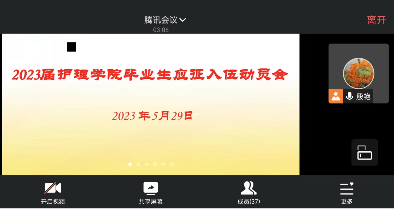 为响应国家、贵州省政府关于鼓励大学生应征入伍相关政策,5月29日kaiyun开云官方网站通过腾讯会议线上召开2023届kaiyun开云官方网站毕业生应征入伍动员会。学院副处级组织员张黎、学生科副科长毕丽以及2023届毕业班适龄男同学参加了此次动员会,由辅导员殷艳主持。