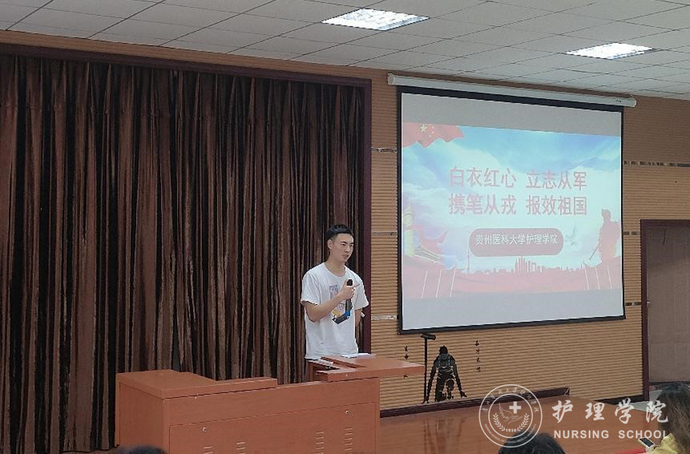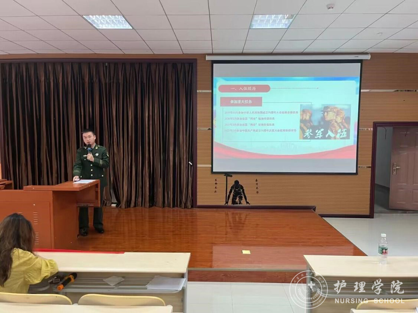 为营造浓厚的参军入伍氛围,让大学生们感悟军旅生活,了解入伍政策,激发应征热情。kaiyun开云官方网站于6月7日在南校区百川楼1101教室召开了以“有为青年立志从军,热血男儿精诚报国”为主题的征兵入伍宣讲会,此次会议邀请了21年退伍军人李汶灿、23年退伍军人张云龙两位同学主讲,学院男护生参加了此次会议,会议由辅导员刘妍老师主持。