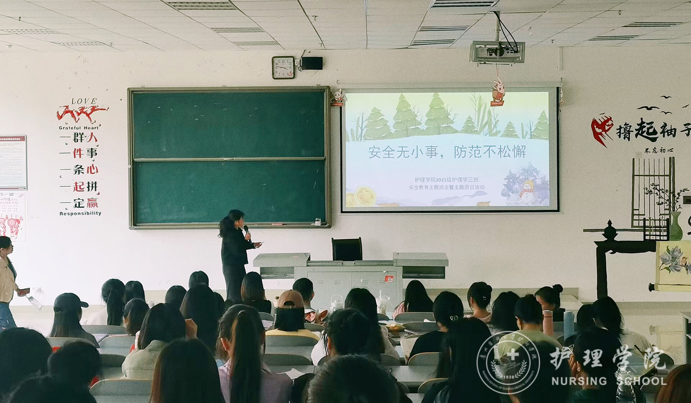 6月13日,为切实提高同学们的安全防范意识,尽可能地避免安全事故发生,创建和谐稳定安全的校园环境,护理学2021级3班召开了以“安全无小事,防范不松懈”为主题的安全教育班会暨主题团日活动。本次班会由安全委员尤立杏、陈颖主持,全体同学参与。