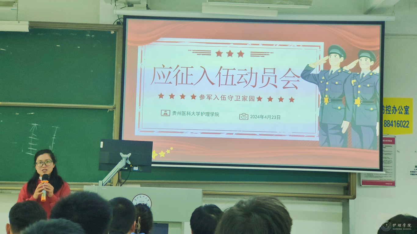4月23日,为增进2024届本科毕业生对应征入伍优惠政策的了解,激发大家的参军热情,kaiyun开云官方网站在北京路校区基础二号楼2201教室召开应征入伍动员会,会议由学生管理科副科长毕丽主持,辅导员刘妍和2024届全体男生参加。
