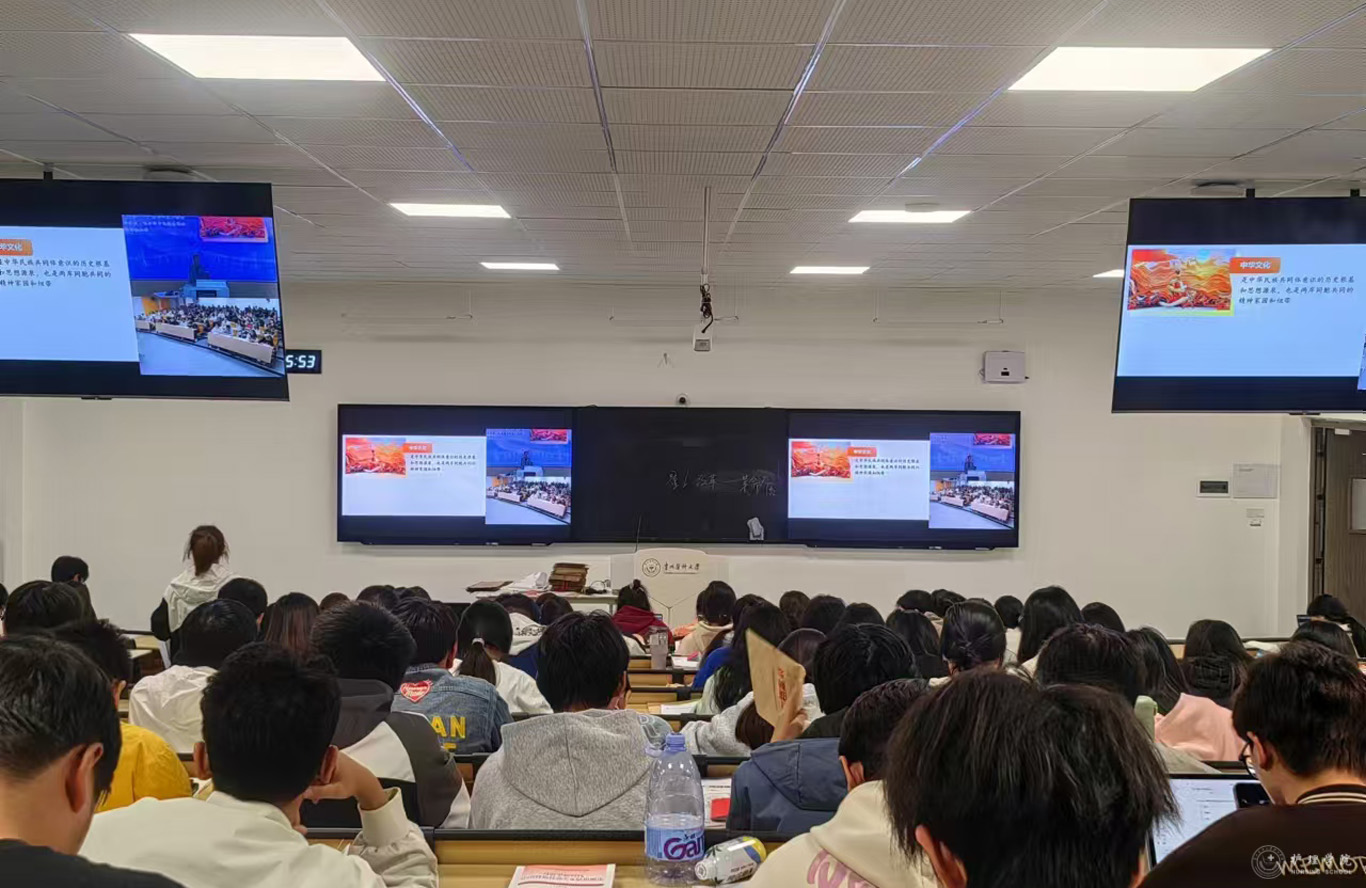 杨英、李亚玲以2024年4月10日习近平总书记会见马英九一行时的讲话作为导入,分别围绕“立足长远把握两岸关系大局”“分裂图谋注定失败”“坚定不移推进祖国统一进程”三个方面,聚焦台湾问题的现状、解决台湾问题的对策及青年如何担当民族复兴伟业三个角度为学生进行深入透彻的讲授。杨英强调,作为新时代青年大学生要坚定理想信念、增强忧患意识,要从思想上清醒认识到为什么台湾问题是中国的内政问题,更要从行动上将个人理想融入国家和民族复兴伟业之中。李亚玲指出,青年大学生要不忘爱国初心、透过现象看本质、坚决抵制任何分裂行为,要学好专业技能、发挥专业特长、厚植家国情怀,要顺应形势与政策、构建知识结构体系、不断提高个人能力,将来为祖国建设添砖加瓦。