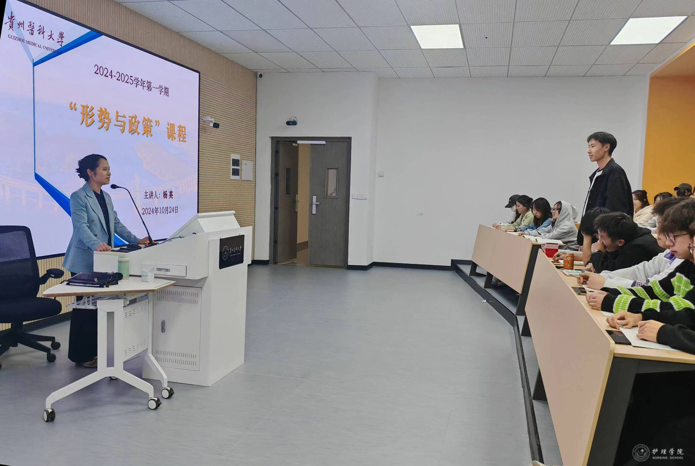 10月24日,为进一步深入学习宣传贯彻党的二十届三中全会精神,进一步加强大学生思想政治教育工作,kaiyun开云官方网站党委书记杨英、院长李亚玲以“坚定前行谋统一,续写民族新辉煌”为主题,分别在云漫湖校区临床组团R305S、R311S教室通过现场教学及云端课堂直播相结合的方式,为kaiyun开云官方网站2024级护理学本科生讲授“形势与政策”课。