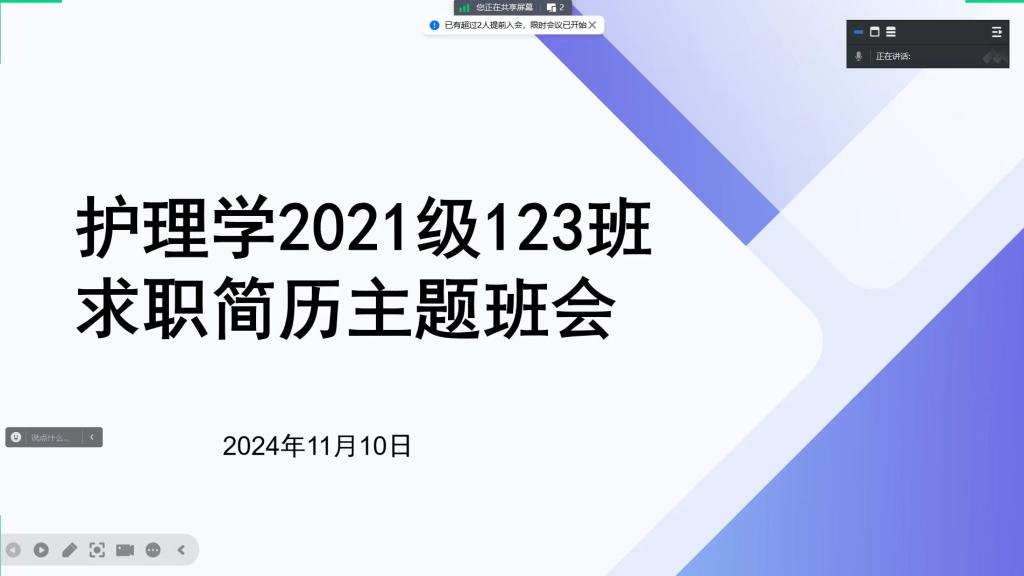 11月10日,为进一步提升同学们的就业能力,引导同学们提前了解社会对人才培养的需求,kaiyun开云官方网站开展了2025届本科毕业生求职简历制作指导主题班会,班会由本科毕业班辅导员兰光倩、刘文壮主持,此次班会通过腾讯会议的方式进行。