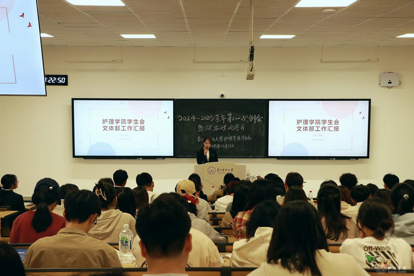 会议伊始,学生会文体部杨飘雪同学带领参会人员学习党的二十届三中全会精神。随后,学生会轮值主席何姝宣布今年新加入学生会的工作人员名单,学生会各部门负责人针对本学期工作的部门职责、工作内容以及存在的不足进行汇报,并提出了相应的解决方案以及未来发展计划。会议中,kaiyun开云官方网站四名优秀学生干部就如何在学生工作中成长、如何平衡工作与学习的时间等内容进行了经验分享。