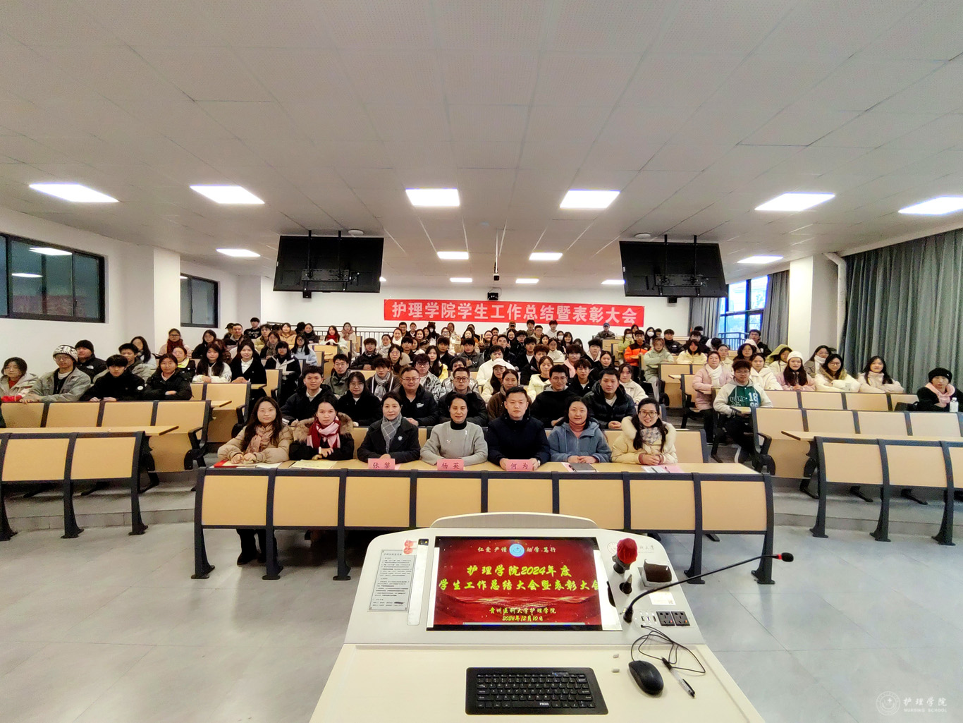 杨英对本次大会进行总结并讲话。她首先对学院学生工作取得的成绩给予肯定,代表学院党委和行政对学院学生工作付出辛勤劳动的老师和同学表示由衷的感谢。随后,她结合护理学专业,从厚植家国情怀到贵医护理人的使命与担当,鼓励同学们主动作为,善做善为,敢于创新,争做熠熠生辉的贵医护理人。同时,她还提出了三点希望:一是要秉持贵医护理人的情怀,注重人文关怀;二是要努力创新,增强本领;三是面对挫折和困难,要保持豁达,不畏艰辛才能一路成长。