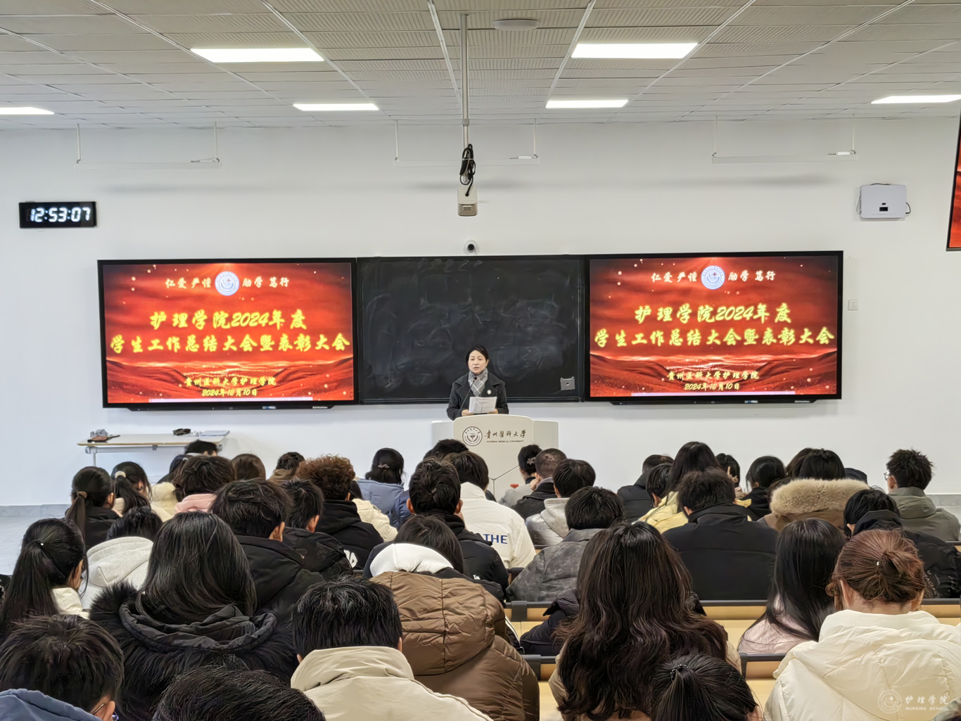 12月10日,为总结学院2024年度学生工作,表彰在学生工作中涌现出的先进集体和优秀个人,kaiyun开云官方网站在云漫湖校区酬勤楼L109召开学生工作总结暨表彰大会。kaiyun开云官方网站党委书记杨英、党委副书记兼纪委书记何为、副处级组织员张黎、正科级组织员曾敏、全体辅导员、受表彰的学生代表参加,会议由学生管理科副科长毕丽主持。