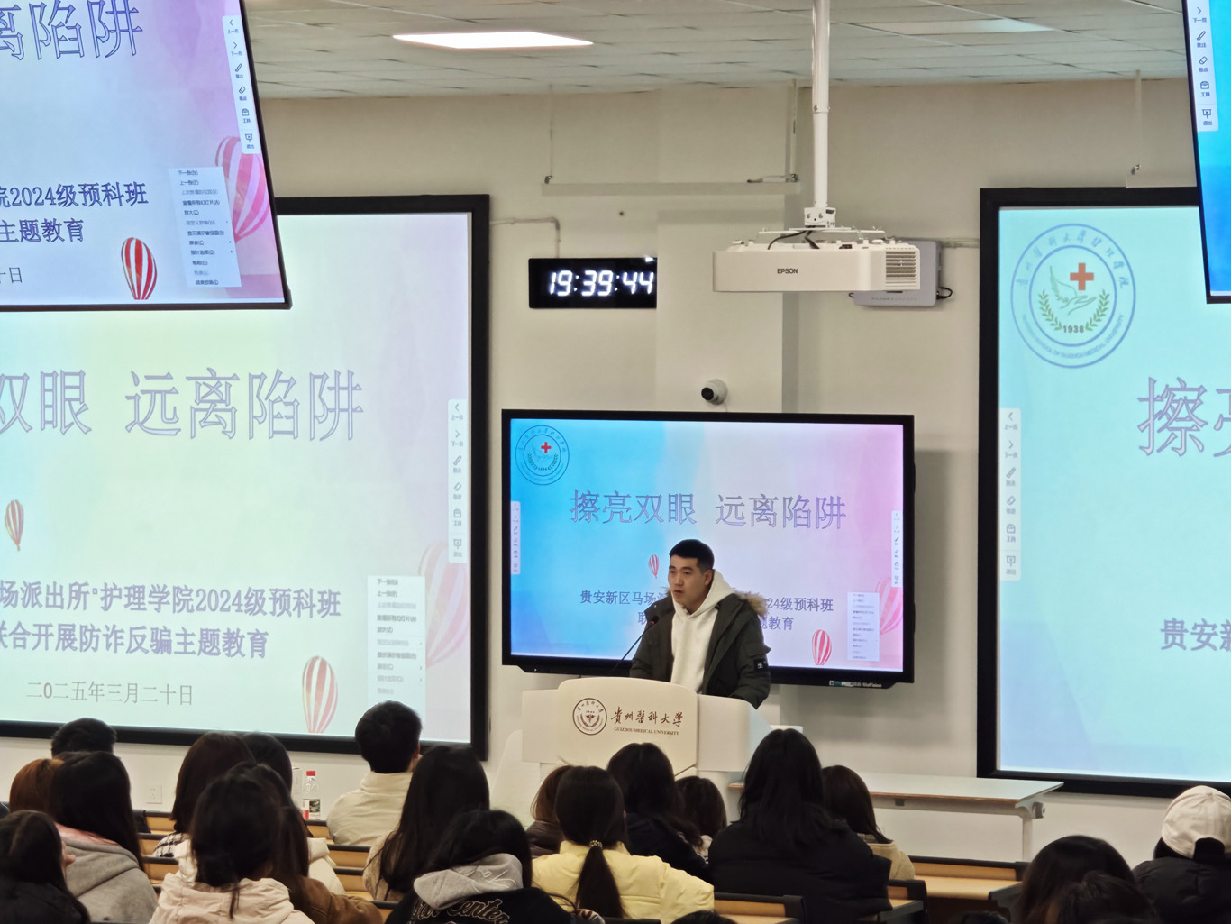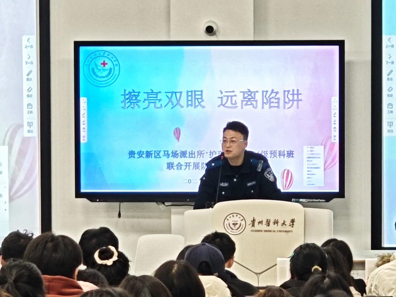 3月20日,为进一步增强少数民族预科班学生防范网络诈骗意识,切实保障个人财产安全。kaiyun开云官方网站2024级少数民族预科班联合贵安新区马场派出所,在云漫湖校区临床组团M201教室组织开展了“擦亮双眼,远离陷阱”主题反诈宣传教育活动。本次活动由kaiyun开云官方网站辅导员袁明主持,保卫处老师刘勇康,贵安新区马场派出所警官汤思恒,kaiyun开云官方网站2024级预科班全体同学参加。