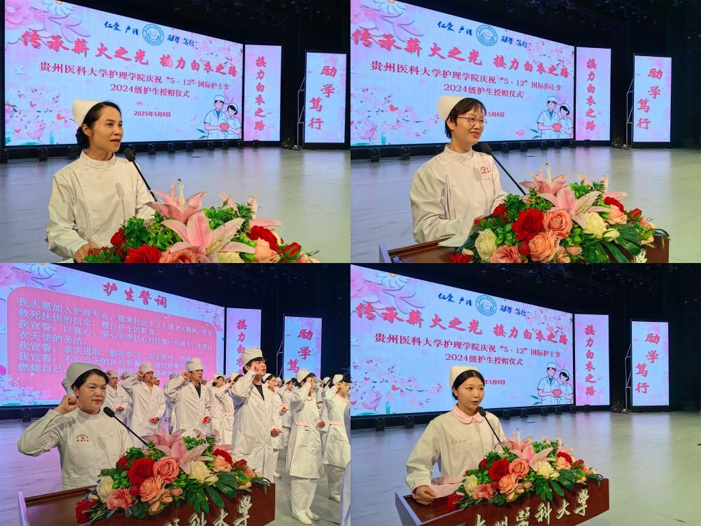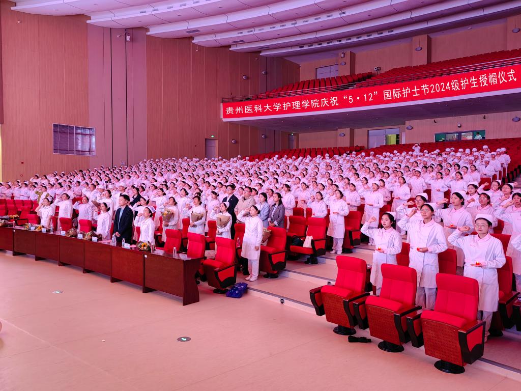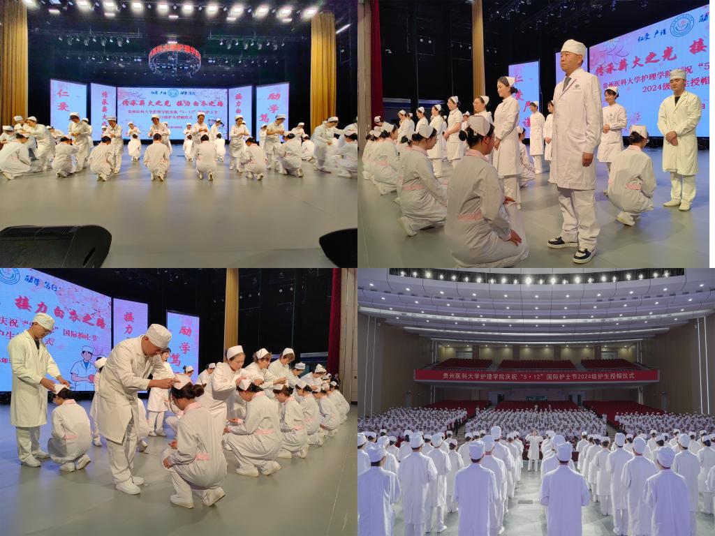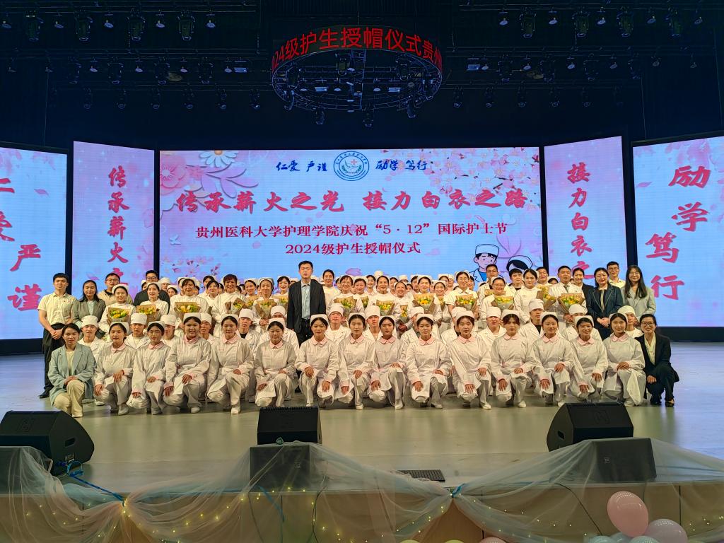 5月8日,为传承南丁格尔精神,激励护理学子逐梦前行,在第114个国际护士节到来之际,kaiyun开云官方网站在云漫湖校区礼堂隆重举办了以“传承薪火之光,接力白衣之路”为主题的2025年“5•12”国际护士节庆祝活动暨2024级护生授帽仪式。活动邀请中山一院贵州医院(贵医附院贵安院区)护理部副主任汤晋、贵州省职工医院护理部副主任周小梅等24位优秀护理前辈为715名护生授帽传烛。学院领导班子、全院教职工及2024级学生参加本次授帽仪式,仪式由院长王秀红主持。