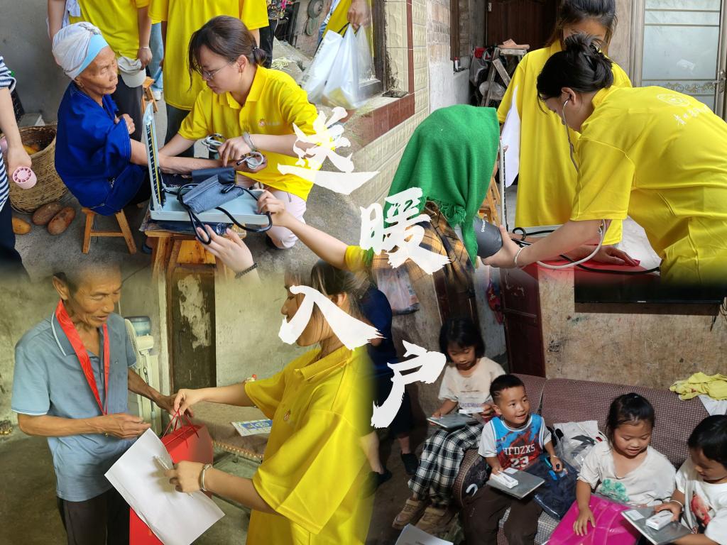 7月11-12日,清晨的薄雾中,队员们走进杨柳塘镇屯上村贫困家庭开展入户义诊,银袖带轻缠老人手腕,血压计数字跳动间,“阿婆,降压药要按时吃!”的叮嘱传递着专业温情。粉蓝书包让孩子们羞涩围拢,崭新棉被铺在老人床头,“身上暖,心里更暖”的朴实话语,成为关怀最动人的注脚。