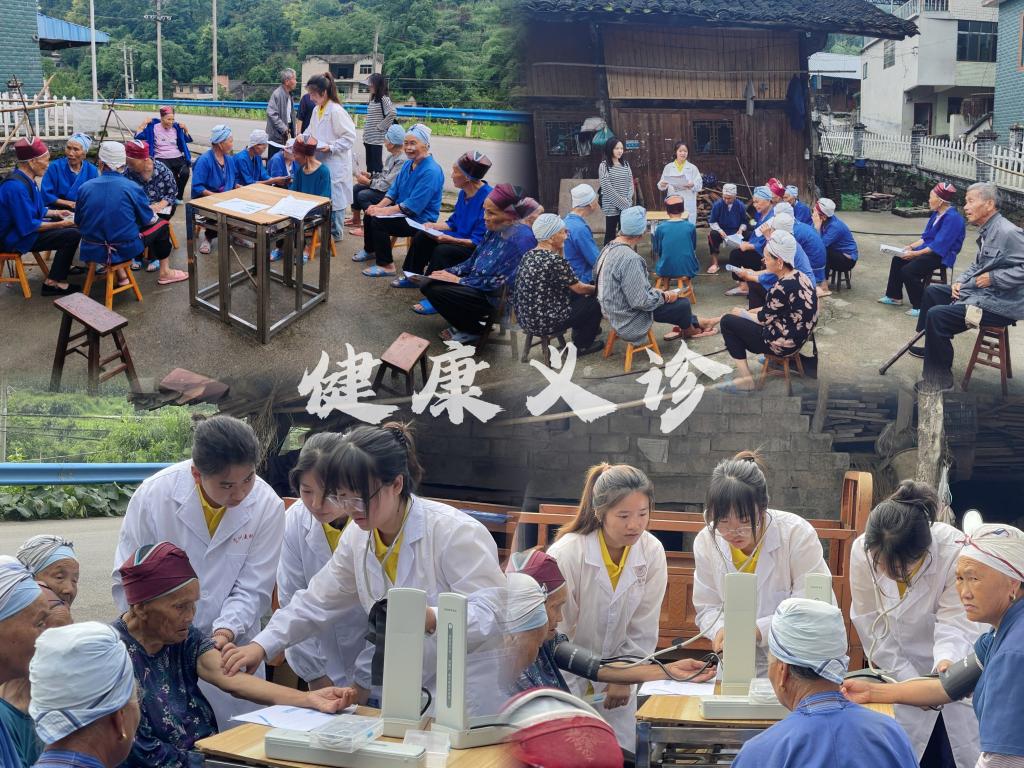 7月10日,为响应乡村振兴健康帮扶政策,队员们在杨柳塘镇开展院坝义诊,为老人测量血压、解读数据,结合苗族饮食习惯提供个性化饮食建议,发放《慢性病防治手册》。针对老年人易受骗特点,开设反诈“银龄课堂”,发放《反诈手册》,并结合真实案例教老人识破保健品骗局。