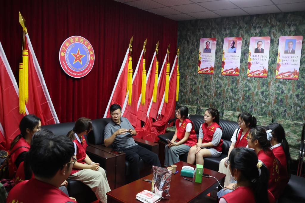 实践队走进威宁县爱国拥军促进会,会长陈灿将个人参军故事、拥军会相关情况、威宁红色遗址、参军英模一一做了介绍。最后,陈灿寄语青年:当以家国情怀为底色,将个人理想与时代同频共振;以军人担当为标杆,敢于在风雨中挺膺担当;以先辈信念为灯塔,在纷繁世事中坚守初心。