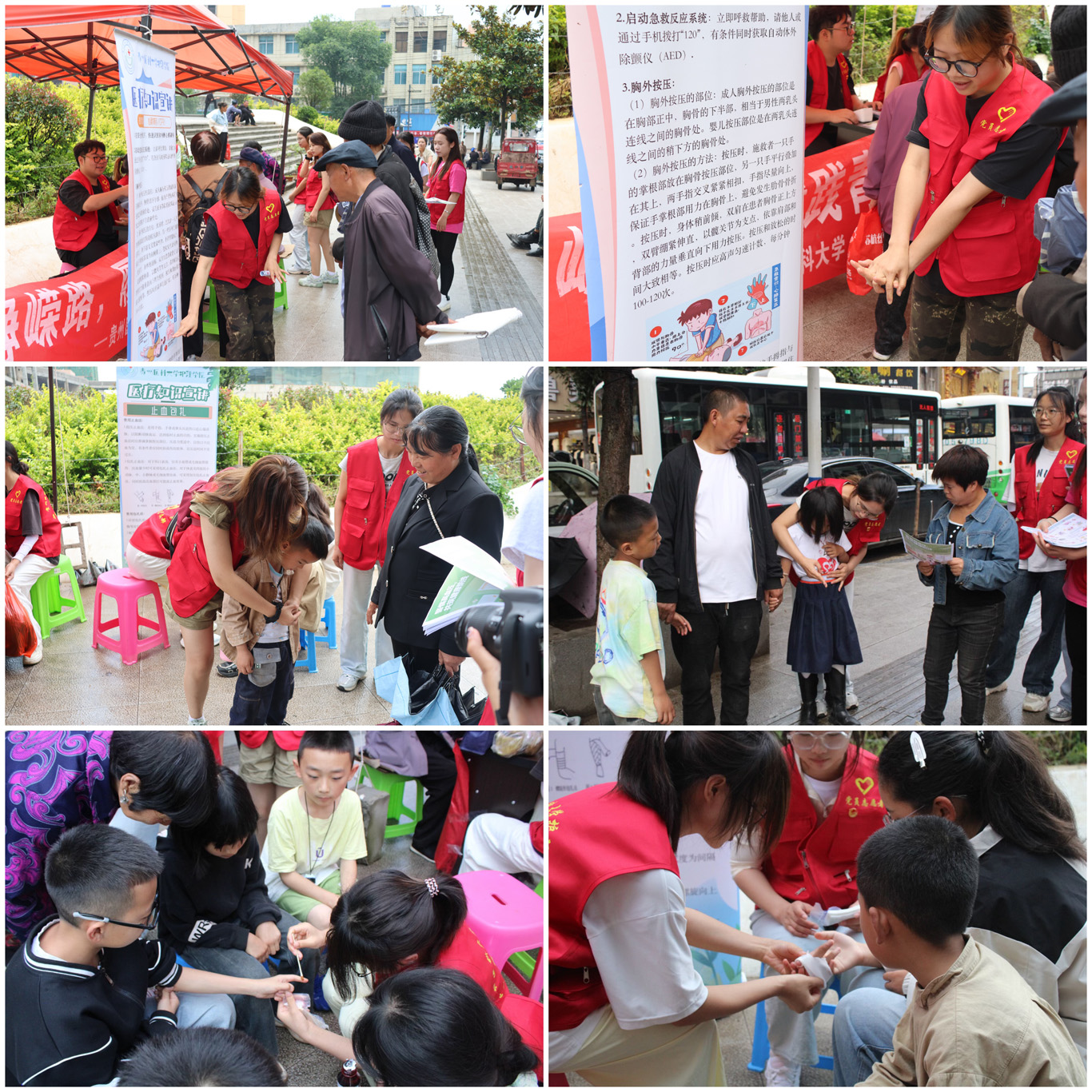 为普及全民急救知识,队员们依托易拉宝,现场开展心肺复苏(CPR)培训。以通俗易懂的语言,结合模拟演示与互动问答,系统讲解操作流程、关键手法及注意事项。