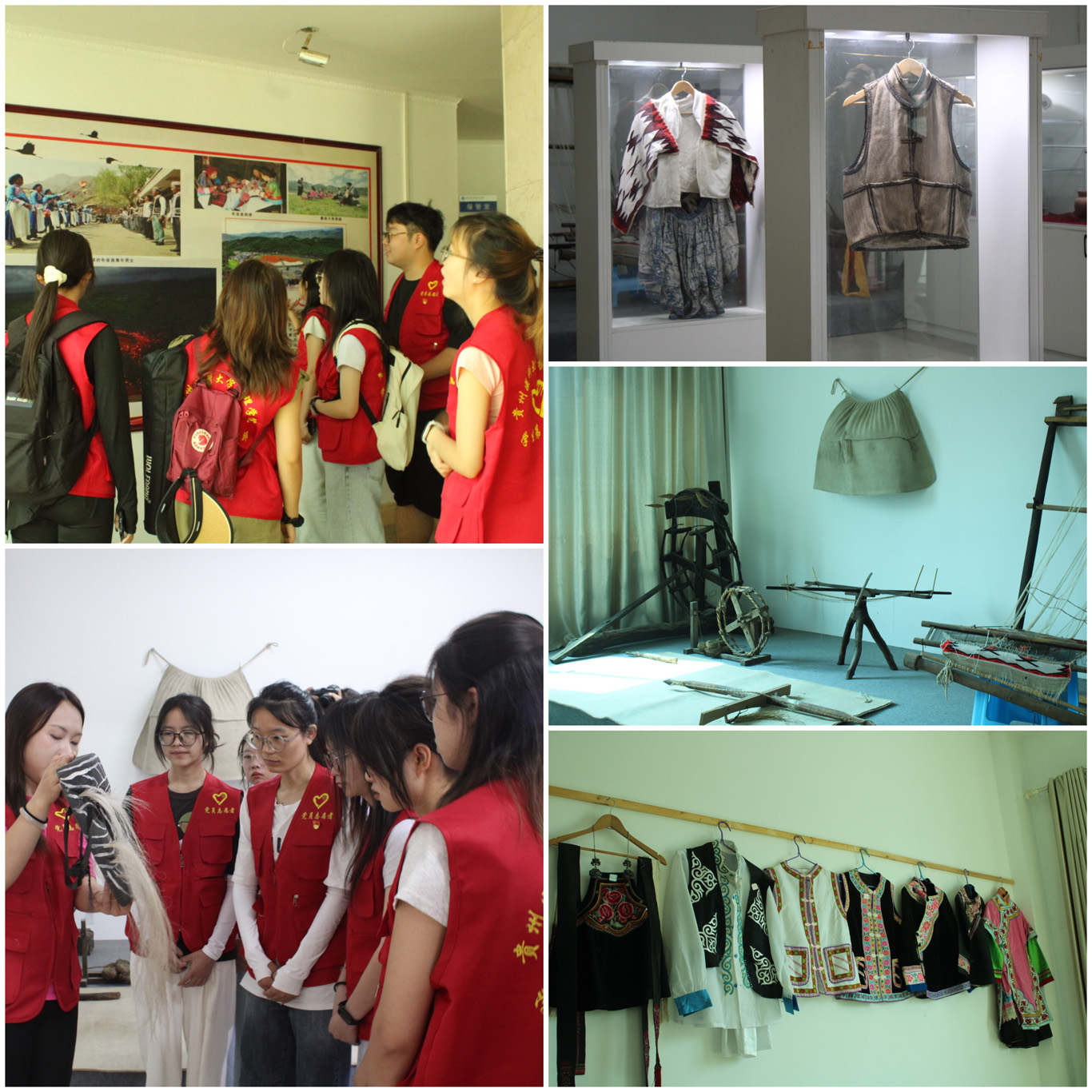 踏入威宁文化馆,队员余星雨化身“讲解员”,从文化馆的历史沿革谈到国家级非遗“撮泰吉”的神秘面具、火把节的熊熊烈焰、四铜鼓舞的铿锵鼓点,把抽象的文化符号还原成可触可感的呼吸与心跳。随后,队长陈瑞接过“接力棒”,细数着展柜内的土陶银饰,艳丽多彩的彝族彩绣、回族素锦,以及那带着神秘色彩的古老面具。