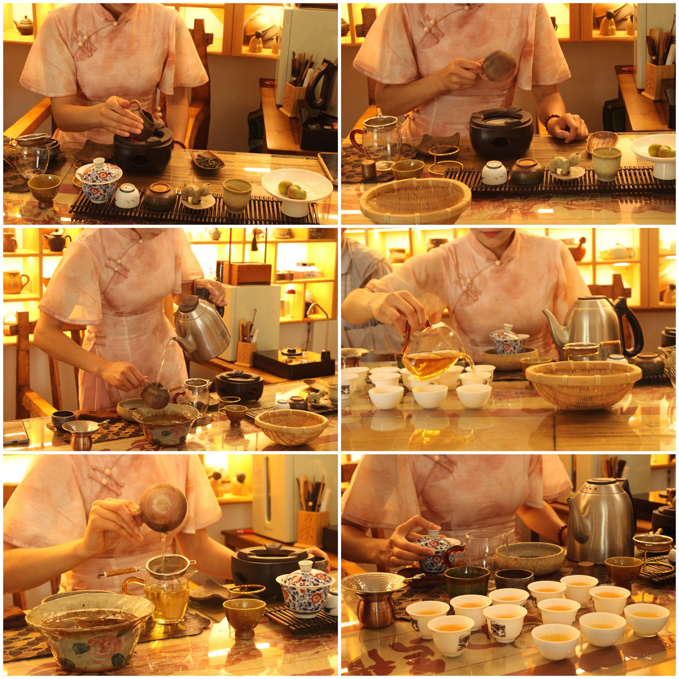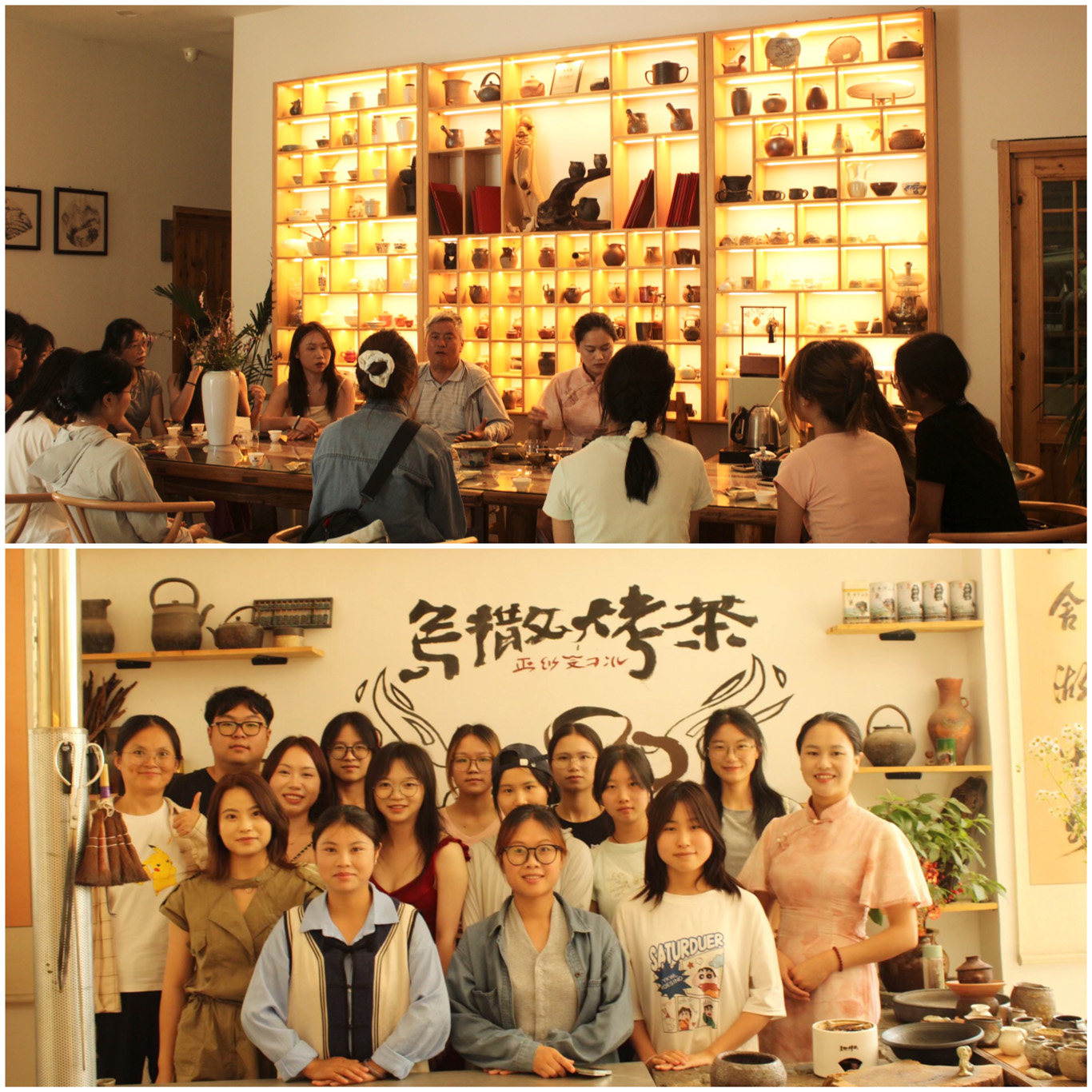 在乌撒烤茶馆,贵州省茶业协会第四届历史协会副会长蔡国威以一壶茶水,为队员们翻开了乌撒烤茶的书卷。工作人员完整展示选茶、烘罐、注水、分杯等烤茶工序。随后,蔡定常之女贵州十佳茶商--蔡娇执手传艺,队员们纷纷加入学习。