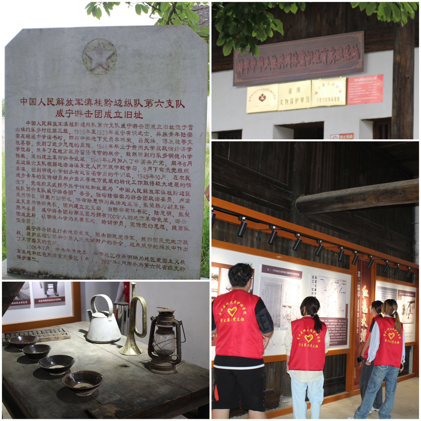 实践队怀揣热忱,化身“急行军”,踏上“重走红军路”征程,探访了威宁游击团成立旧址。1949年威宁首位共产党员陆宗棠在此秘密组建教导队、培育游击骨干的峥嵘岁月。后来游击团在此培训学员、发展武装,积极摧毁旧政权、清剿匪霸、建立新政权,为威宁解放与巩固贡献卓著。