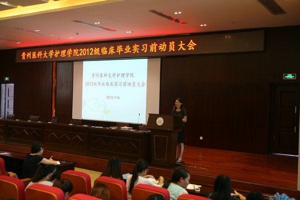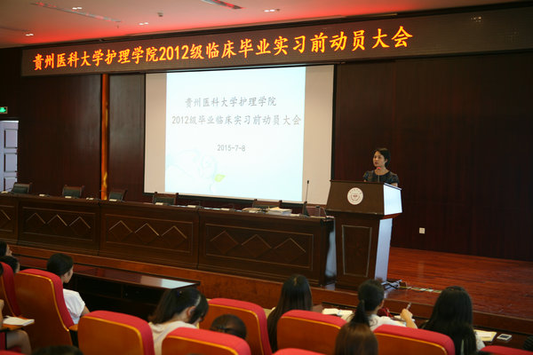 为了帮助学生做好进入临床实习心理准备,确保毕业实习工作顺利进行,kaiyun开云官方网站于2015年7月8日下午在花溪校区道德讲堂召开了临床毕业实习前动员大会,kaiyun开云官方网站党委副书记杨英、副院长刘志燕、学生科科长曾敏、办公室副主任张常喜、辅导员毕丽及2012级本科班学生参加了此次大会。会议由生产实习科科长柳忠燕主持。