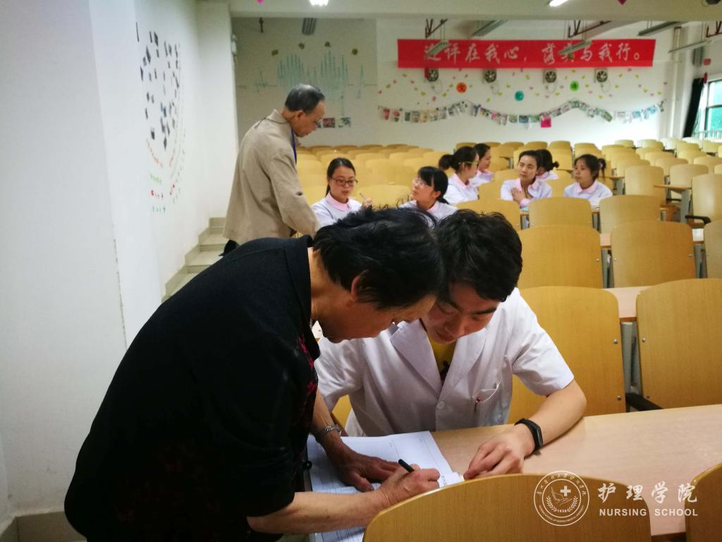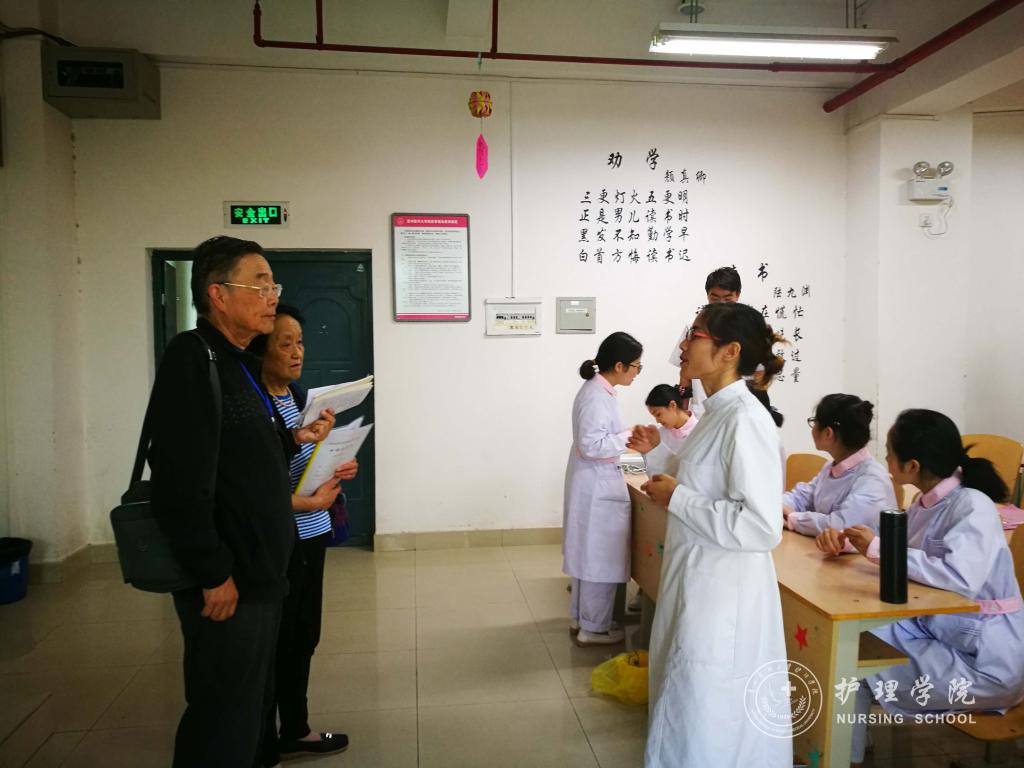 最后专家组到学校4401、4301等教室对护理学2014级专升本乙班的《护理临床技能实训》教学进行了督查,在现场专家们分别与带教老师进行交谈,了解分组及相关教学要求情况,并与同学们进行单独交流,了解同学们的学习情况及收集教学意见。