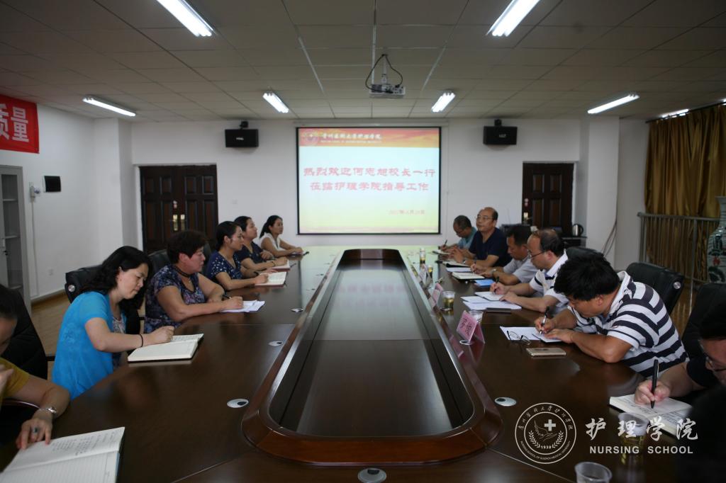 8月28日下午,校长何志旭、副校长罗俊、校长助理周余来带领教务处和教学质量监控与评估办公室一行8人,到kaiyun开云官方网站检查指导护理学本科专业认证工作。会议由kaiyun开云官方网站党委书记兼院长贾秀英主持,学院党政领导、职能科室负责人及教职工参加了会议。