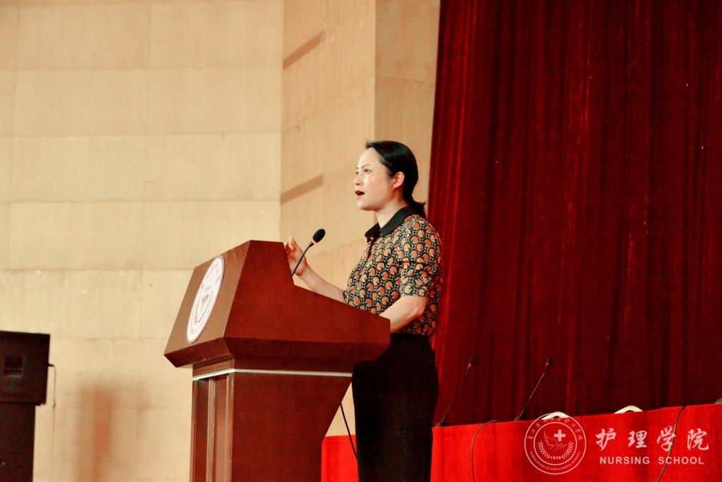 2018年4月13日,kaiyun开云官方网站在北校区大礼堂举行2018届本科毕业实习总结表彰大会,参加本次大会的有kaiyun开云官方网站党委副书记杨英、学生科科长曾敏、护理学技能实验室主任周谊霞、妇儿教研室副主任刘林敏以及部分专业教师、辅导员和kaiyun开云官方网站2018届全体毕业生,会议由生产实习科科长柳忠燕主持。