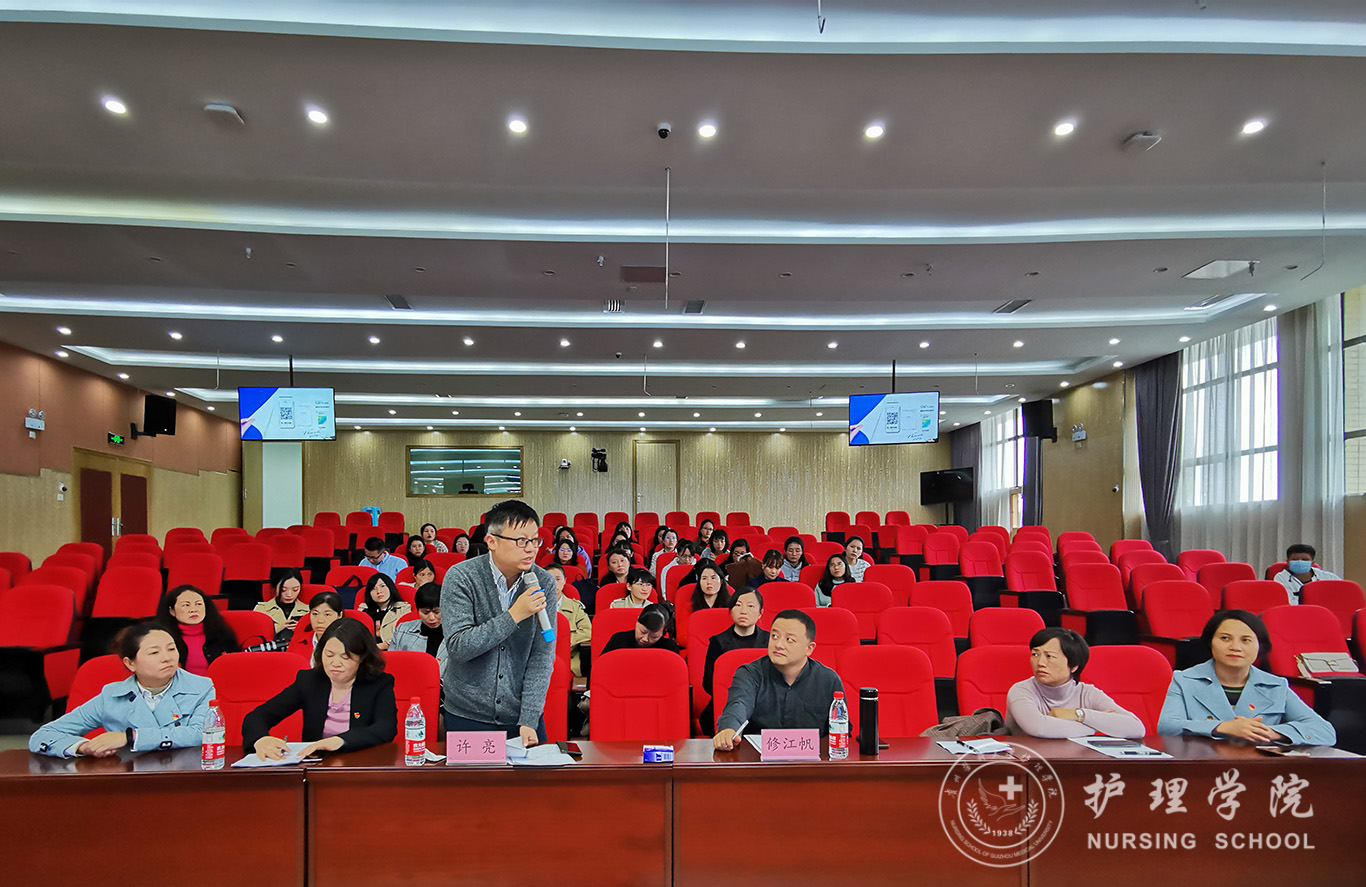 本次活动分为三项议程,首先由外科护理学教研室马丽老师作了题为《肠造口并发症的护理——造口皮肤黏膜分离》的示范性教学,许亮老师、修江帆老师以及学院各位领导老师就其教学设计、课件制作以及授课技巧等方面做了细致点评,提出了宝贵的改进意见,这为现场的老师今后如何上好一堂课给予了新启示,受益非浅。