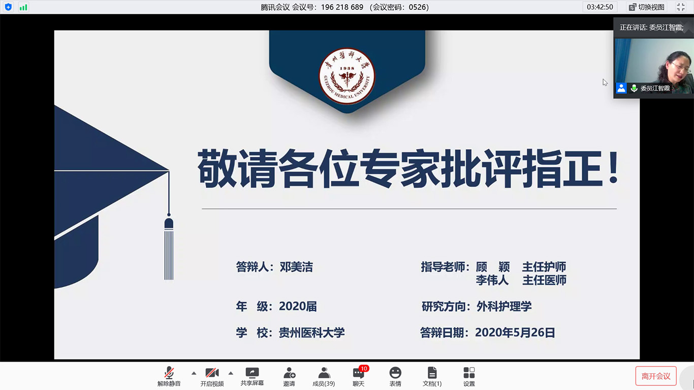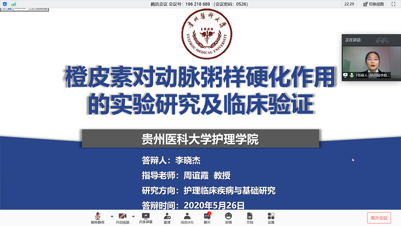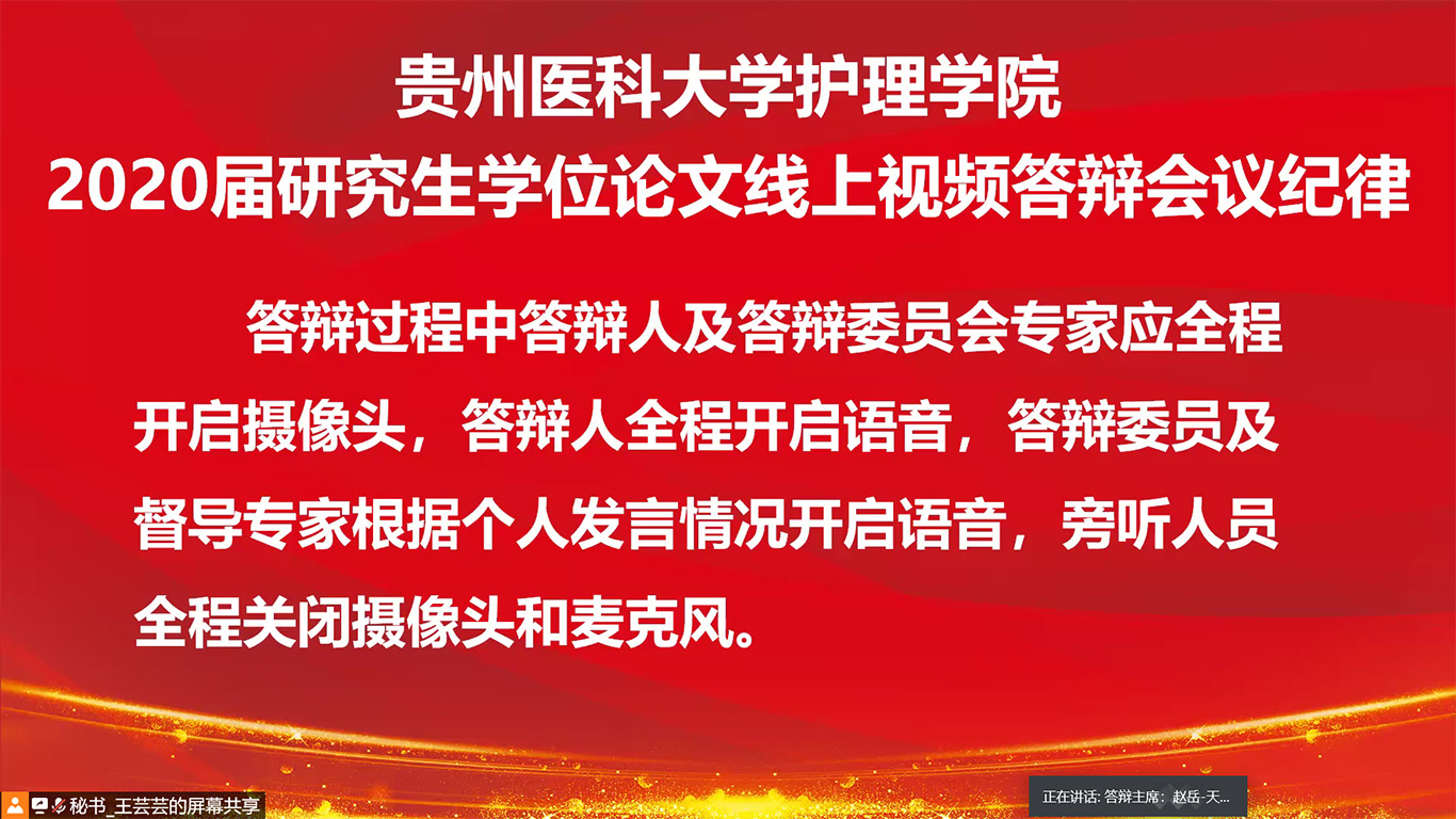 在疫情防控期间,为贯彻落实教育部《关于做好2020年上半年毕业研究生学位授予相关工作的通知》文件精神、贵州省以及学校疫情防控有关文件要求,做到管理不放松、质量不下降、毕业不延误,确保研究生培养顺利完成,kaiyun开云官方网站于2020年5月26日通过腾讯会议平台进行了2020届硕士研究生学位论文答辩。