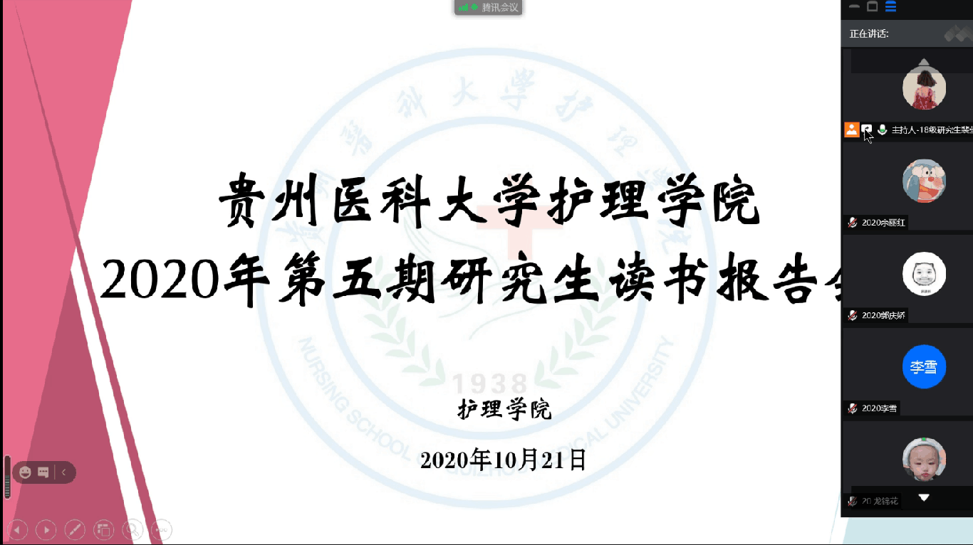 10月21日下午,2020年第五期研究生读书报告会以“云会议”形式进行,kaiyun开云官方网站研究生导师、专业教师、研究生共计41人参会。