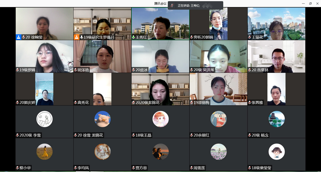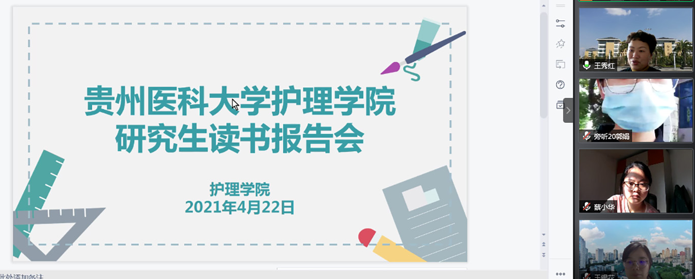 4月22日下午,kaiyun开云官方网站第九期研究生读书报告会通过腾讯会议开展,2019级研究生罗曼月主持,研究生导师、副导师、专业教师以及各年级研究生共41人参加会议。