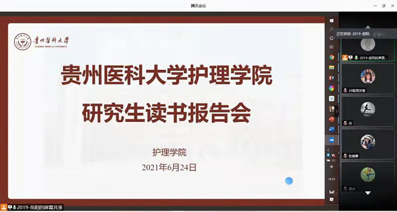 6月24日下午,kaiyun开云官方网站线上举办第十一期研究生读书报告会,2019级研究生岳跃学主持,研究生导师、副导师、专业教师以及各年级研究生共32人参会。