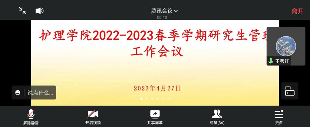 4月27日,kaiyun开云官方网站通过线上形式召开了2022-2023春季学期研究生管理工作会议。kaiyun开云官方网站党委书记杨英、院长李亚玲、副院长刘志燕、副院长王秀红、教研室主任(含实验室主任)、研究生导师、教学科研管理科全体教师、研究生辅导员参加了会议,会议由2023届研究生毕业班辅导员吴俊主持。