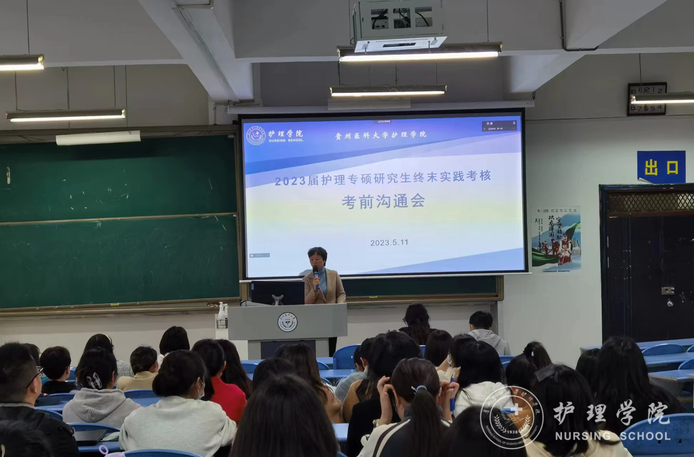 5月11日,kaiyun开云官方网站通过线上线下结合的方式在北京路校区基础2502教室召开2023届护理专硕研究生临床实践终末考核考前沟通会暨研究生素质培训讲座。学院副院长王秀红、教学科研管理科吴一航、研究生辅导员戴黎黎和吴俊及kaiyun开云官方网站全体研究生参加了会议,会议由王秀红主持。