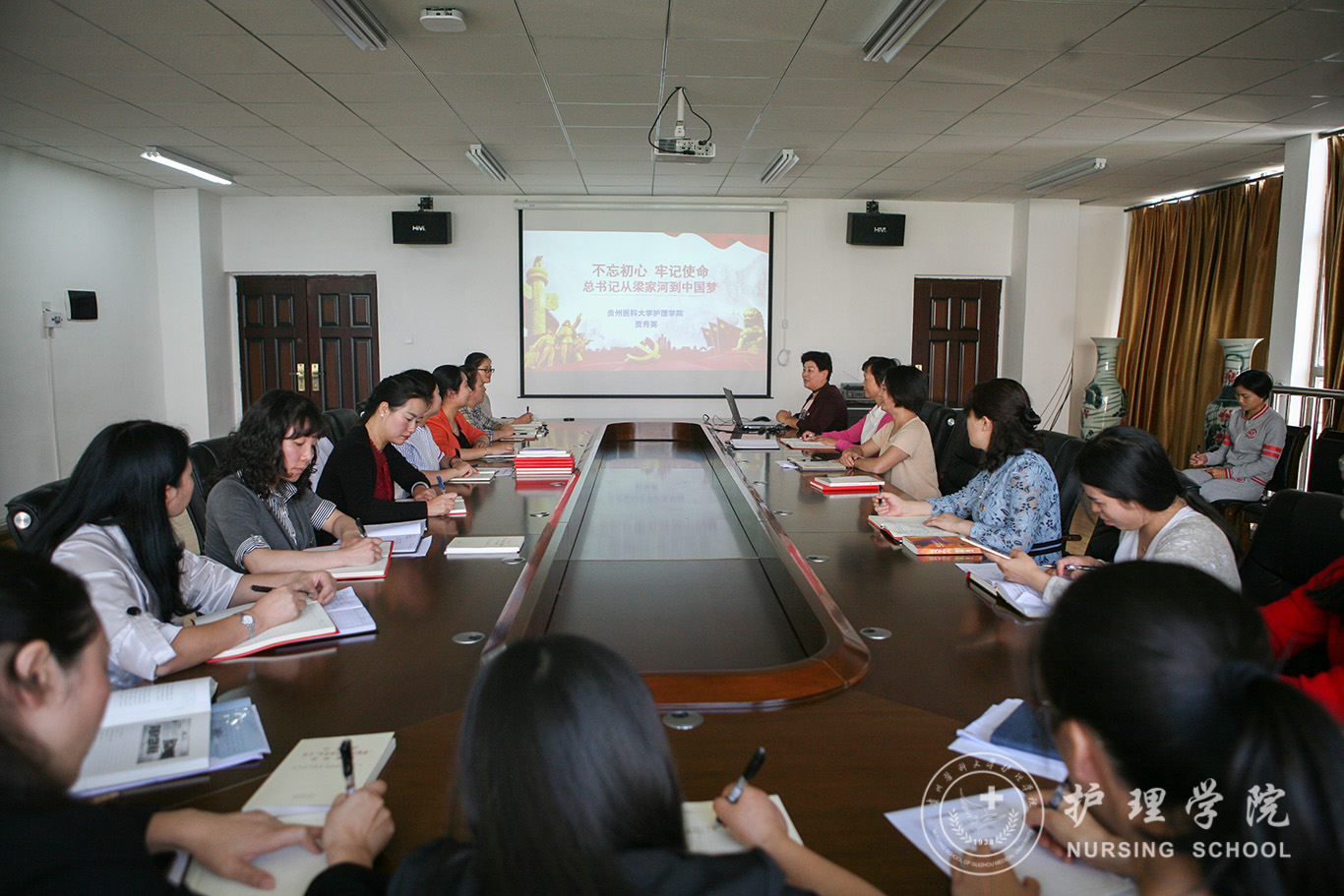 贾秀英结合自己阅读《习近平的七年知青岁月》的感受,分两个章节——“树高千尺也忘不了根”、“不忘初心、牢记使命”——为大家讲授了党课,通过丰富的图片,详实的文字,展示了习近平总书记知青岁月中的艰苦生活和成长历程,集中体现了他的崇高理想信念、丰富实践经验、卓越领导能力和人格魅力。贾秀英还与大家分享了学习习近平总书记关于“不忘初心、牢记使命”重要论述的体会,带头进行了问题检视。她强调,我们要全面加强党的建设,筑牢基层党组织战斗堡垒;要全面加强学院科研力量培养,要在护理学研究领域发挥更多、更好的作用;要全面加强思想政治教育,强化党性教育,教育广大师生传承南丁格尔精神。