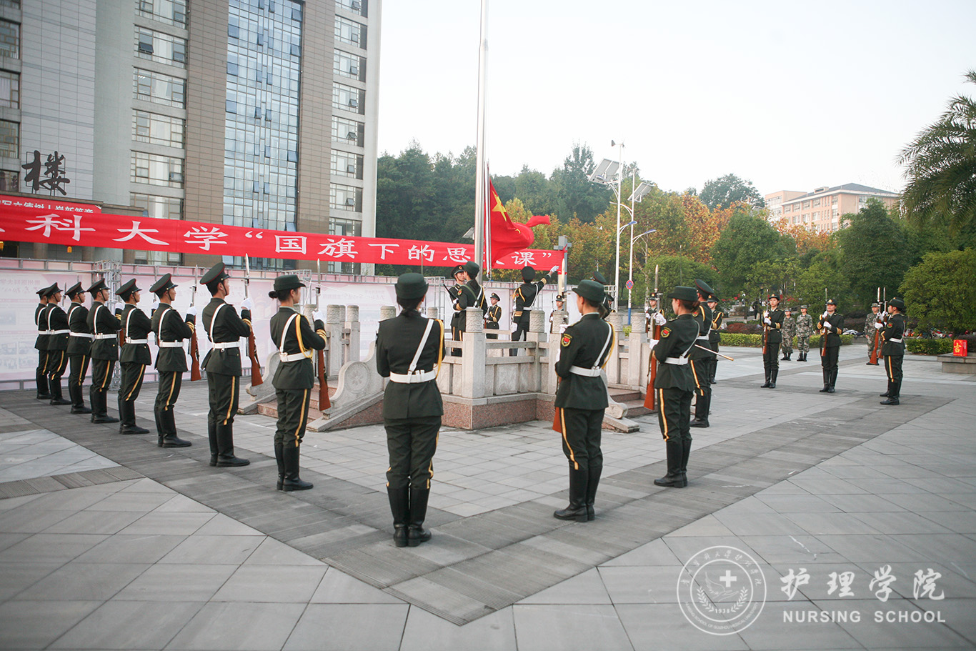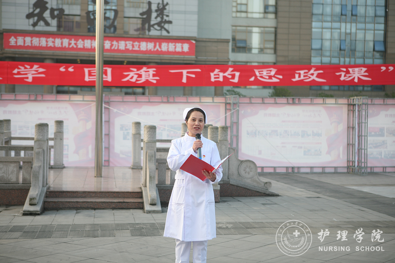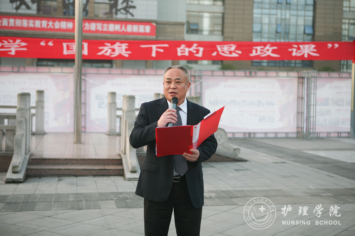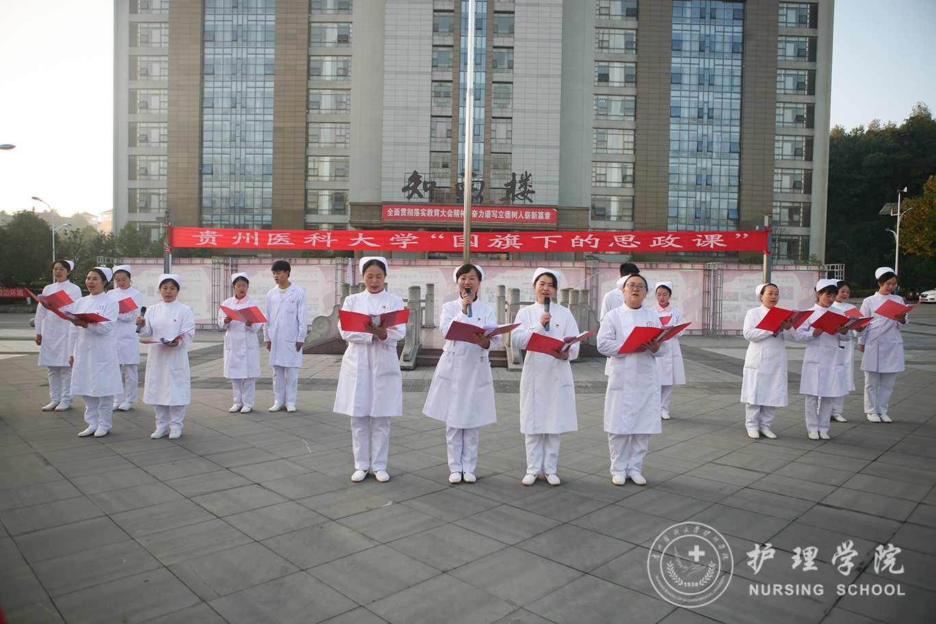 升旗仪式结束后,田晓滨给kaiyun开云官方网站师生上了一堂深刻的“国旗下的思政课”。他回顾了党带领人民艰苦奋斗、自力更生的历史,分析了新中国在短时间内发生了改天换地巨大变化的原因。他指出:70年来,中国始终坚持走自己的路,经过长期探索和实践,开创和发展中国特色社会主义,从根本上改变了中国人民和中华民族的前途命运。我们的祖国从来没有像今天这样欣欣向荣、蒸蒸日上,我们的民族从来没有像今天这样扬眉吐气、自信满怀,我们的人民从来没有像今天这样幸福安康、意气风发。他谈到:建校以来,学校始终秉承“诚於己,忠于群,敬往思来”的校训,坚持“文化建校、质量立校、人才强校、科研兴校”的办学理念,在贵医精神的感召下,学校的各项事业取得了长足的进步,实现了跨越式发展。作为贵医人,我们责任重大、使命光荣,所以每个人都应把个人发展与学校的事业和祖国的命运紧密结合起来,为学校的发展、祖国的繁荣做出应有的贡献。