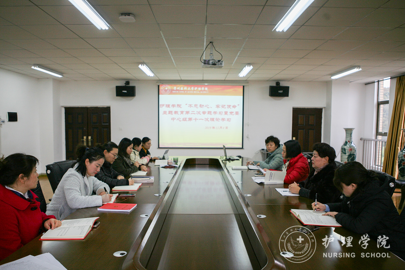 12月4日,kaiyun开云官方网站在南校区百川楼五楼会议室召开了“不忘初心、牢记使命”主题教育第二次专题学习暨党委中心组第十一次理论学习。会议由党委书记杨英主持,学院副科级以上干部、教研室负责人参加了学习。
