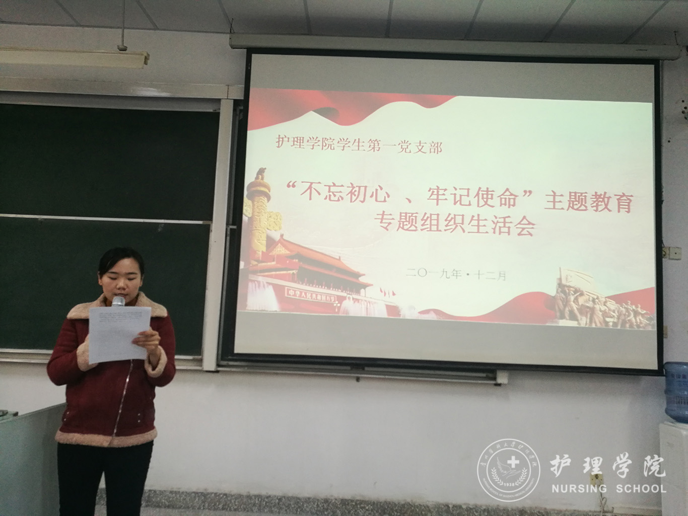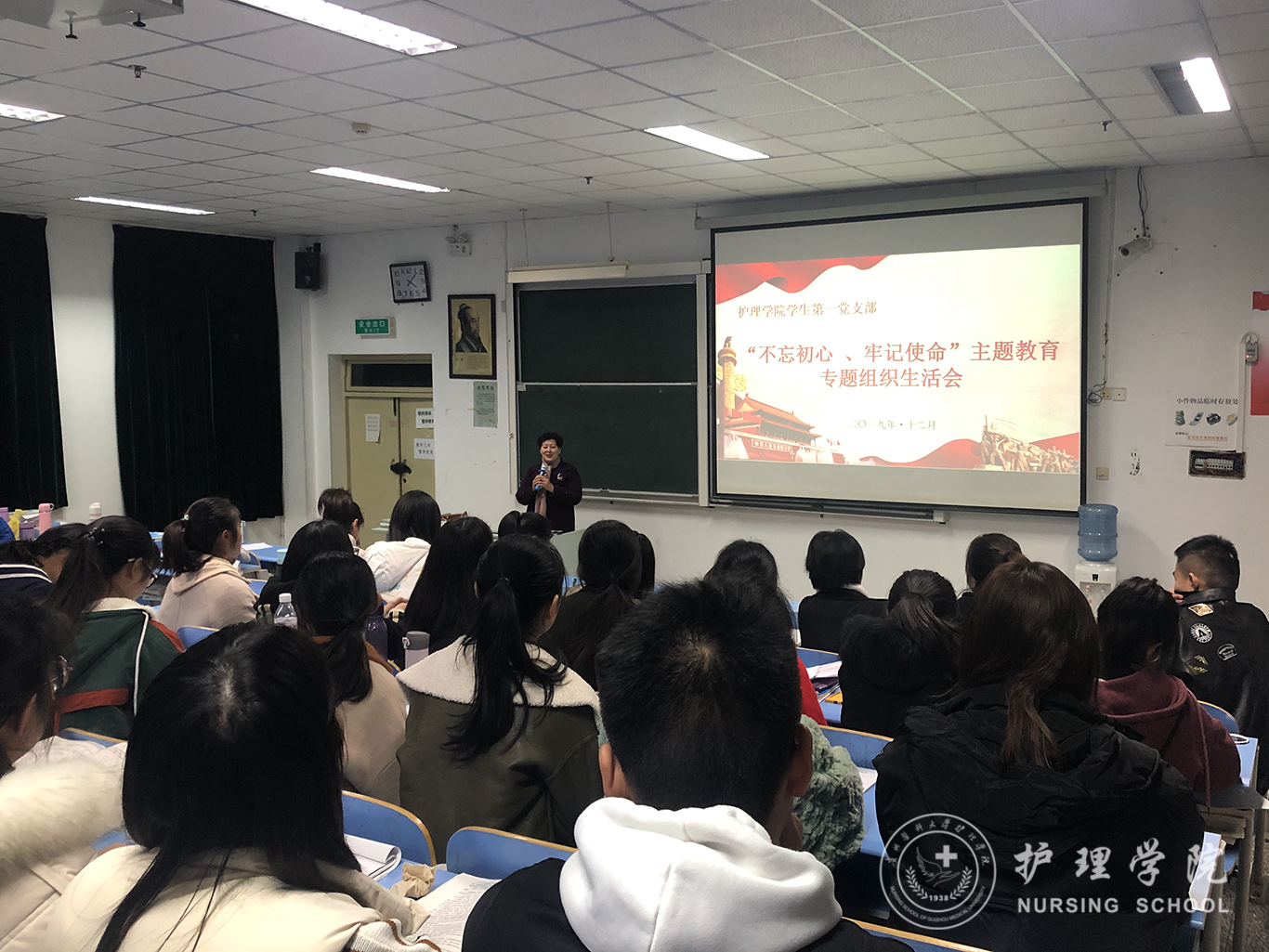 12月9日,kaiyun开云官方网站学生第一党支部在北校区3402教室召开了“不忘初心、牢记使命”主题教育专题组织生活会暨民主评议党员大会,kaiyun开云官方网站院长贾秀英、党委副书记王秀红到会指导,会议由学生第一党支部书记李颖主持,全体支部党员参加,部分发展对象列席。