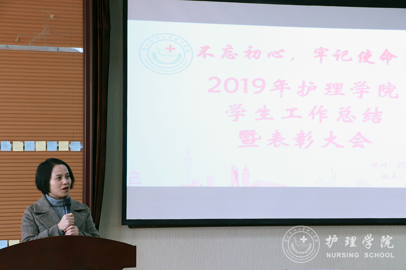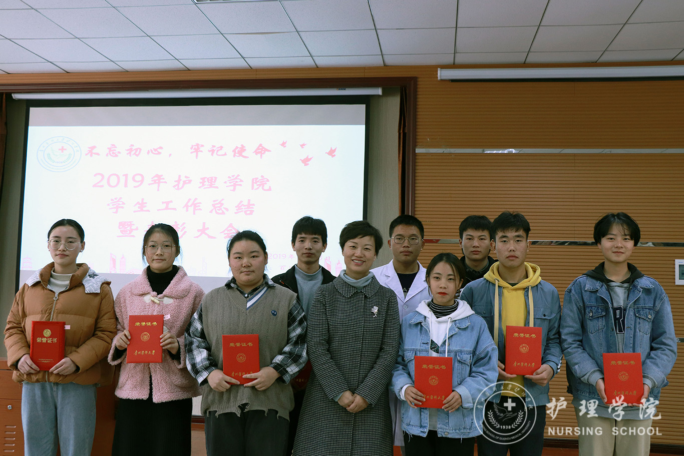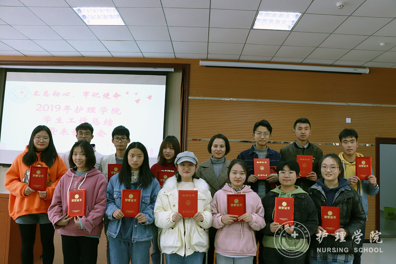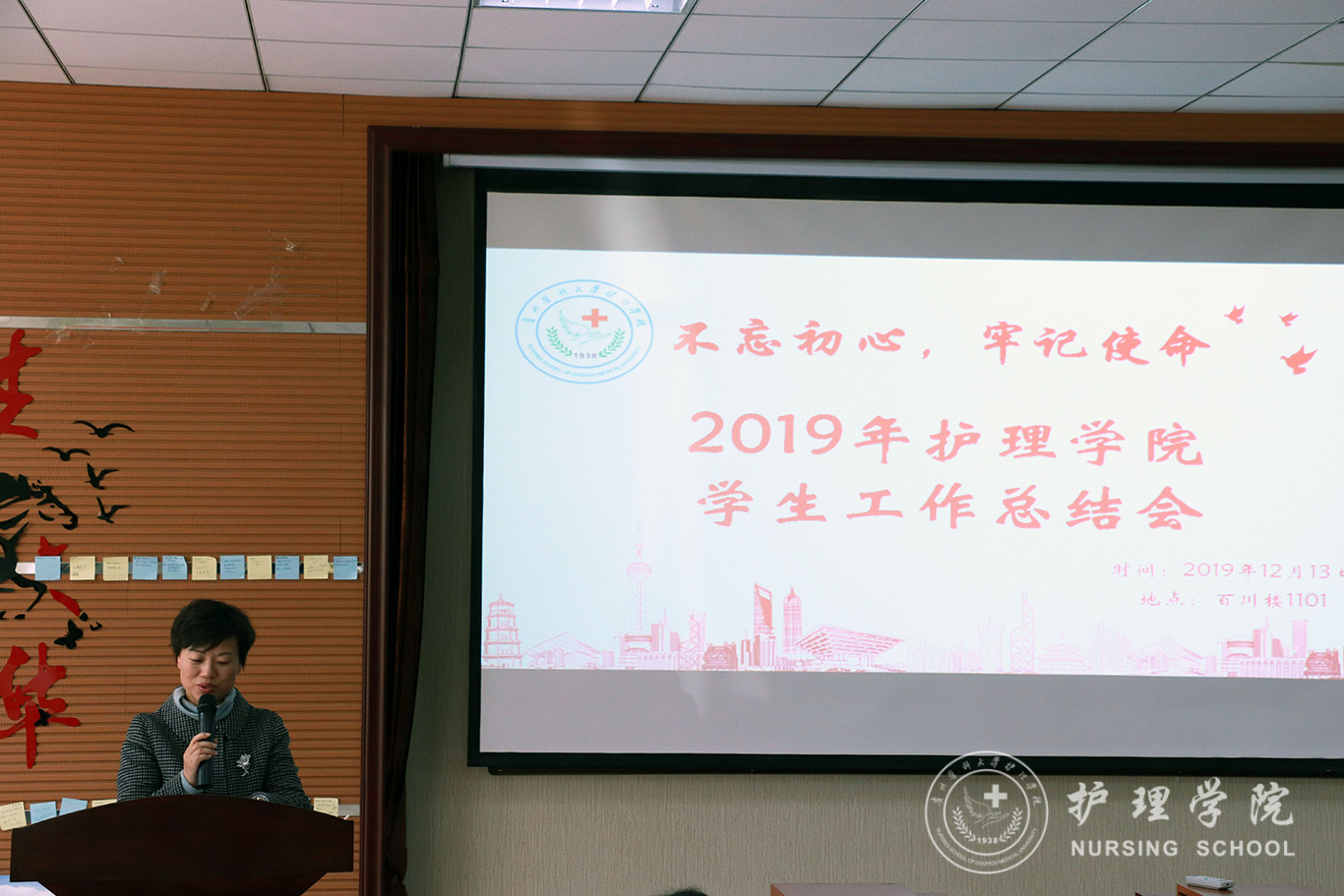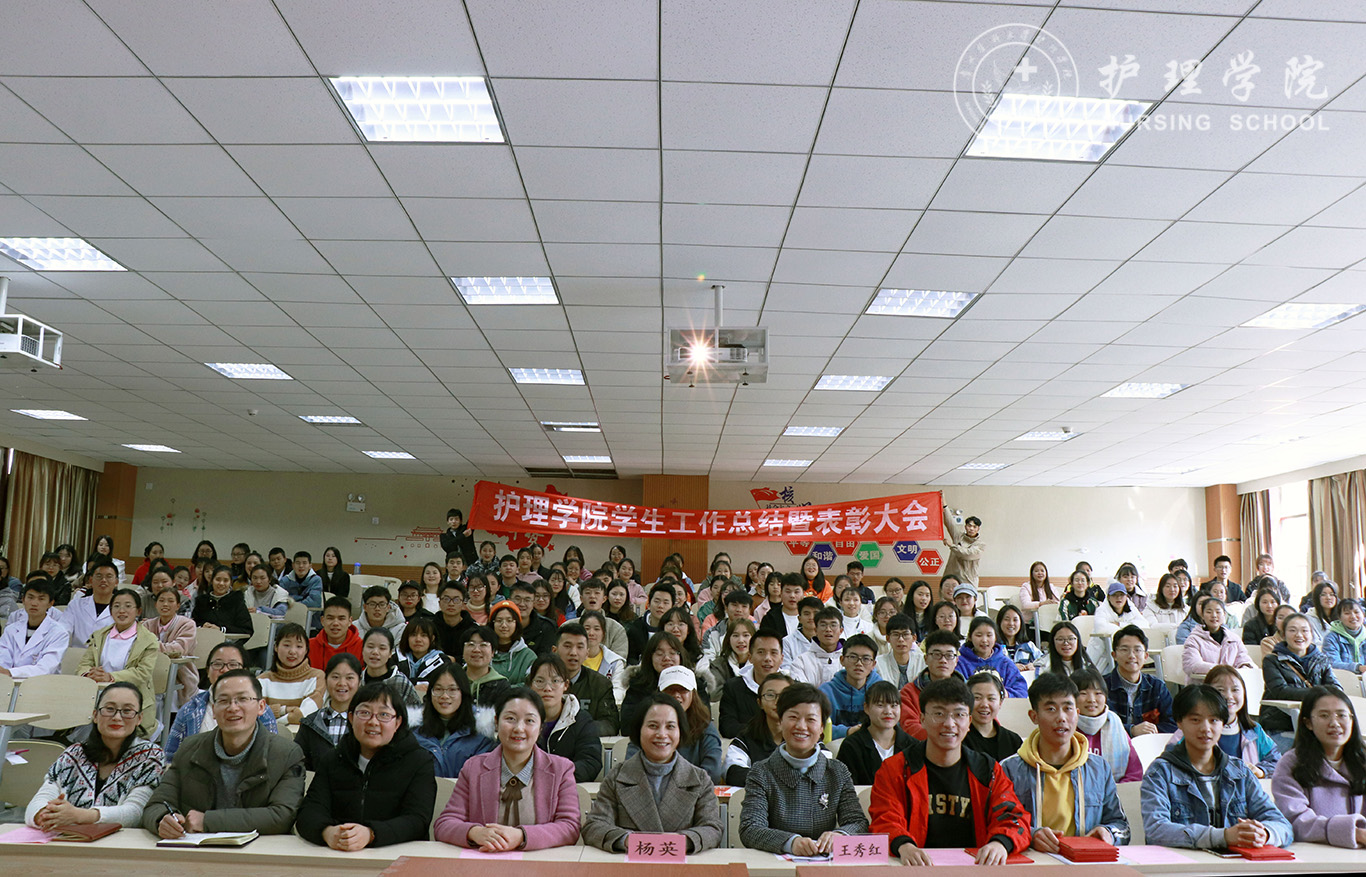 为贯彻落实习近平总书记系列重要讲话精神和党的“不忘初心、牢记使命”主题教育精神要求,全面总结学院2019年度学生工作内容、表彰先进,12月13日中午,kaiyun开云官方网站在南校区百川楼1101教室隆重召开2019年学生工作总结暨表彰大会。kaiyun开云官方网站党委书记杨英、党委副书记王秀红、正科级组织员曾敏、辅导员及学生会、团学工作办公室、护理技能协会、男护生协会和各班级学生干部代表100余人参加大会。会议由学院团委副书记王晓玲主持。