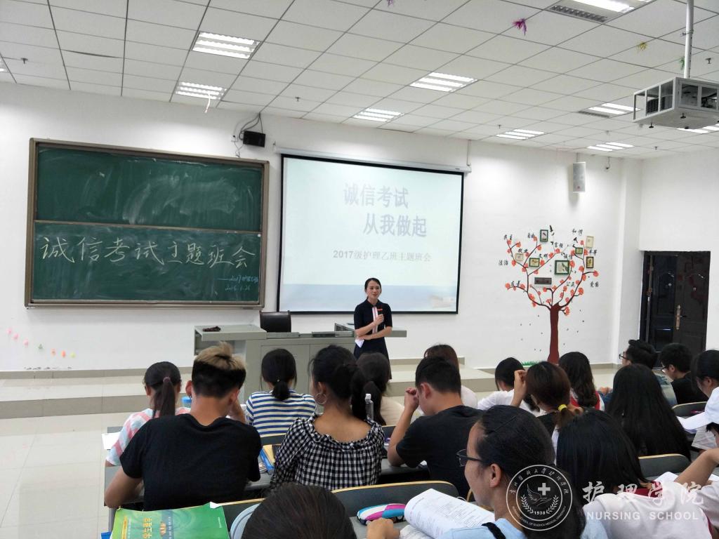 为了提高教学管理质量,帮助学生养成良好的学习习惯,培养健康的心理状态及人文素养,kaiyun开云官方网站于6月26日晚6:00在南校区7404、7406教室开展诚信考试暨大学生心理健康教育主题班会。班会由各班班长主持,班主任吴俊、王丽主讲,2017级护理甲班、乙班全体同学参加。