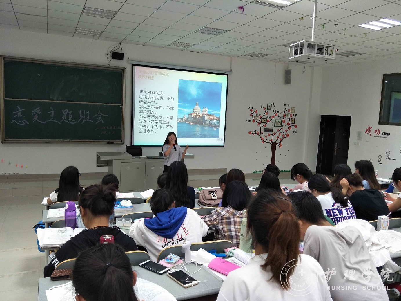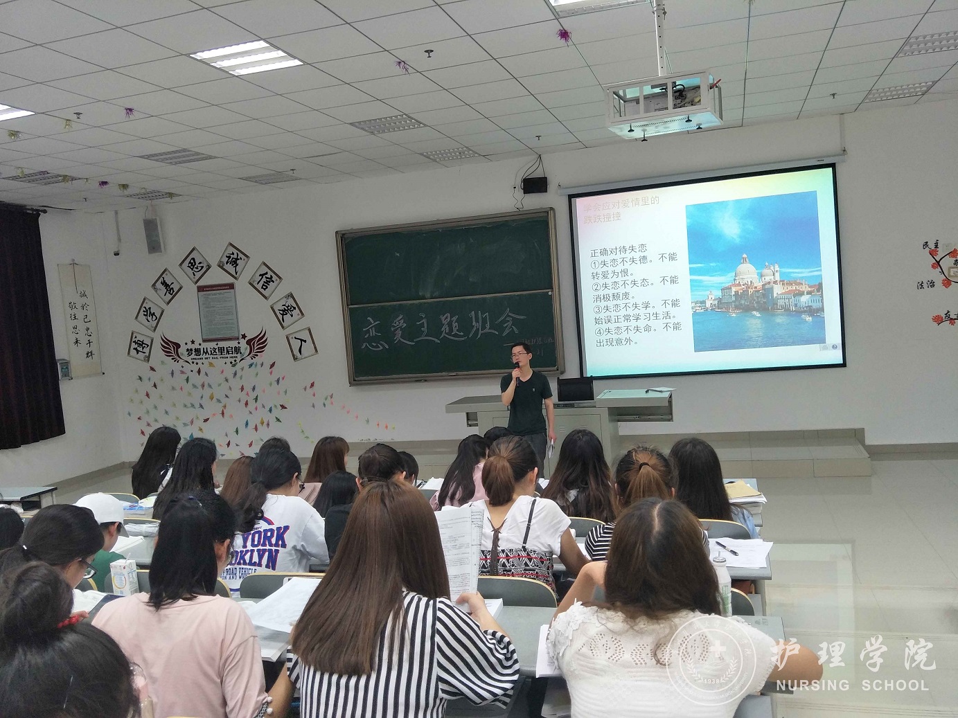 为了使同学们树立正确的恋爱观,6月21日晚,kaiyun开云官方网站在南校区7404、7406教室召开了大学生恋爱主题班会。2017级辅导员马景瑶老师,2017级护理学甲班、乙班全体同学参加了此次班会。