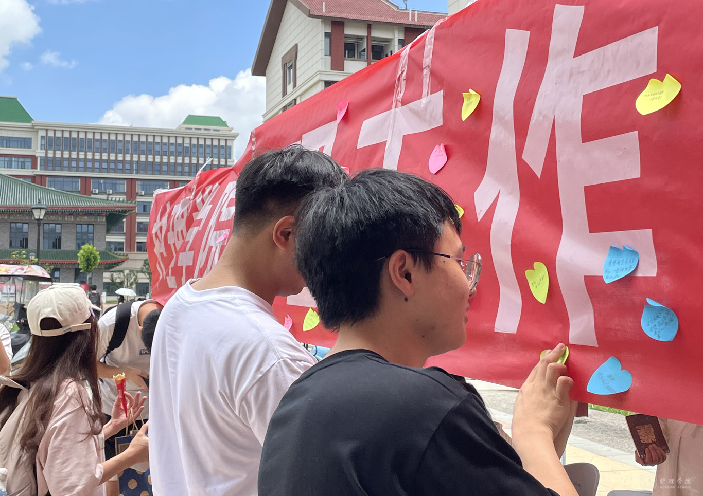 活动包含问答游戏、角色互换和袒露心声三个环节,参与的同学即可获得精美小礼品。游戏环节欢乐有趣,同学们又一次回忆起了有关父亲的点滴。在角色互换和袒露心声环节中,同学们拿起纸笔,写下自己成为一名父亲后对孩子的期许以及对父亲的赞美、感激、祝福,还有那些与父亲共同经历的难忘回忆,简短的话语表达了对父亲最真挚的情感。
