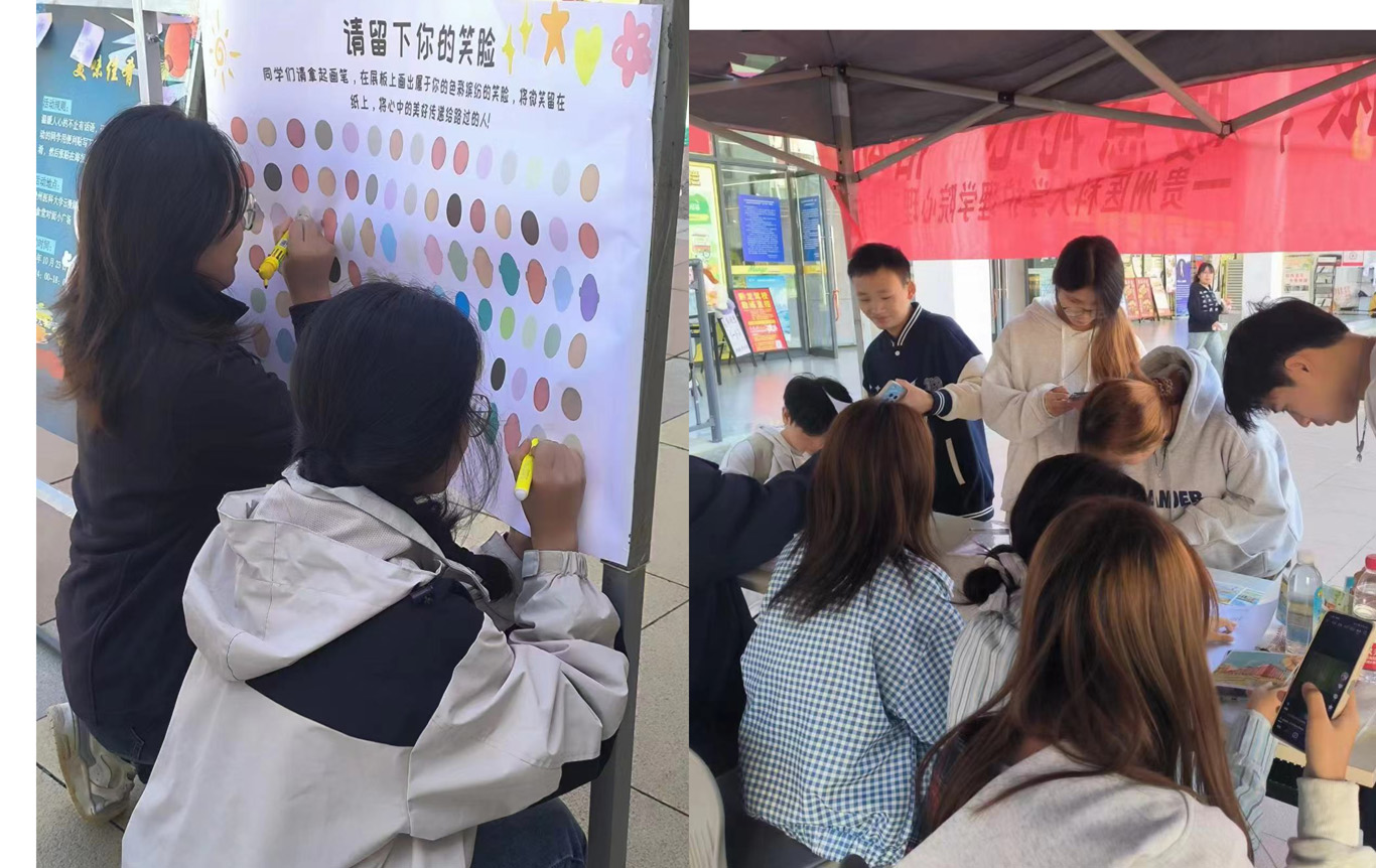 此次活动分为“美味佳肴”、“共享大脑”、“笑脸盈盈”三个环节,任选两个环节参与即可获得相应的奖励。活动现场,同学们在便利贴上写下自己难过时最想吃的美食,然后张贴在海报上,并在海报上画出自己的笑脸,一张张笑脸画作,不仅传递了温暖,也让整个活动现场充满了欢声笑语。游戏环节,参与活动的同学现场组队完成词语接龙挑战,在大家默契配合下,不少同学获得了奖励,这不仅提高了同学们的团队意识,还培养了同伴之间的信任,同学们表示收获满满。