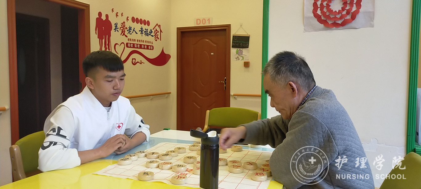 活动开始,在组长陈玉涵、杨明秀两位同学的带领下,志愿者们早早的到达了照料中心,在工作人员带领下,学生们分配了各自的任务,对照料中心的内部和外部环境进行了卫生清洁,随后陪老人们一起做早操,帮助老年人打扫卫生、陪他们下棋、聊天,为他们带去欢乐,献上爱心。服务过程中,志愿者们了解老年人现存的各种身体和心理问题,学生们讨论老人健康问题的护理要点,深刻体会到老年护理的重要性。